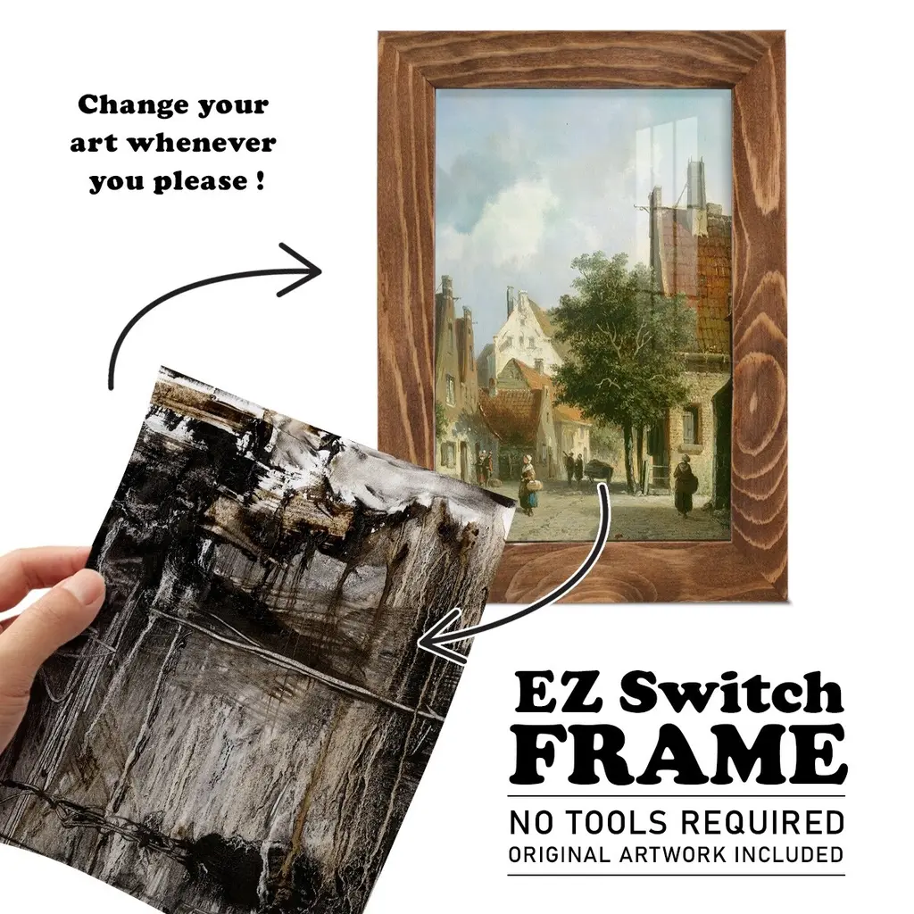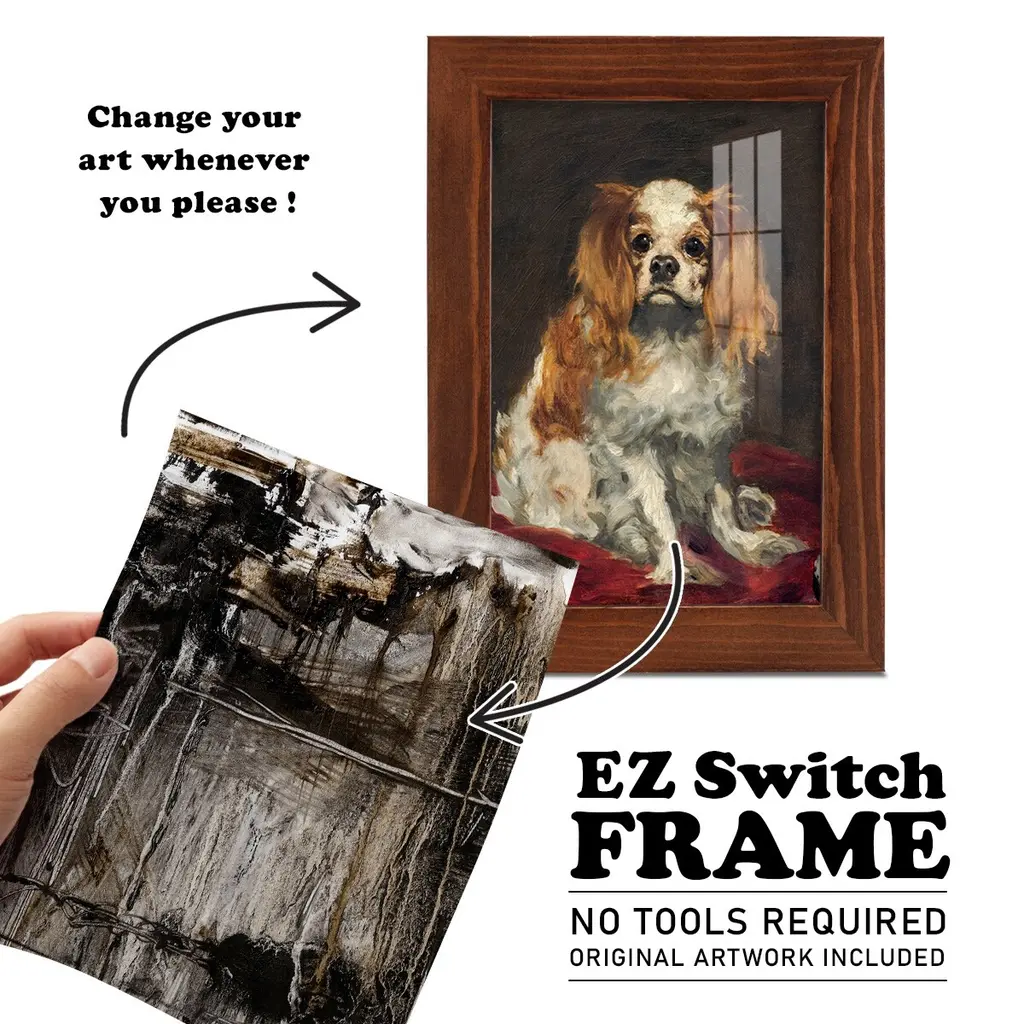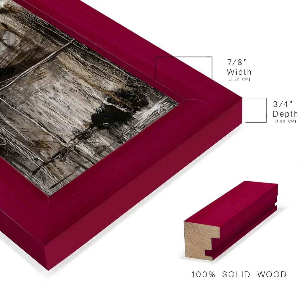 Continuum II -EZ SWITCH Framed Print w/glass-Cherry Red A delightful, framed print. Featuring a solid wood frame with real wood glass. This premium print is giclee quality. In addition, every frame features a removable back and table top stand. This allows you to change your art in the future or to just stand the art on a table for a new look. We are sure you'll enjoy our new series of EZ SWITCH Framed Art. Solid Wood Frame Real Glass Removable / Replaceable Art Built in Tabletop Stand Sizes range from 4x6 up to 12x15 - buy just one or pair them up as sets as you see fit.
