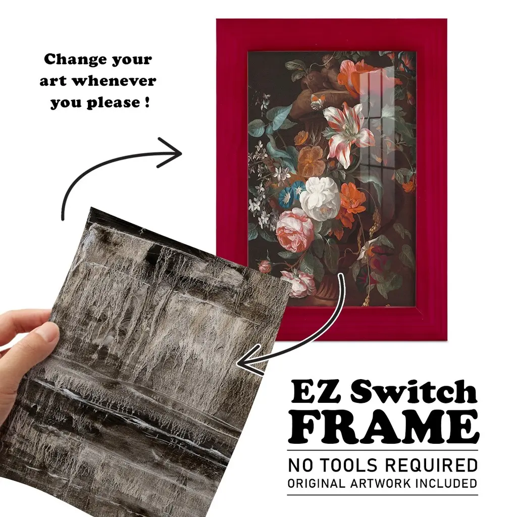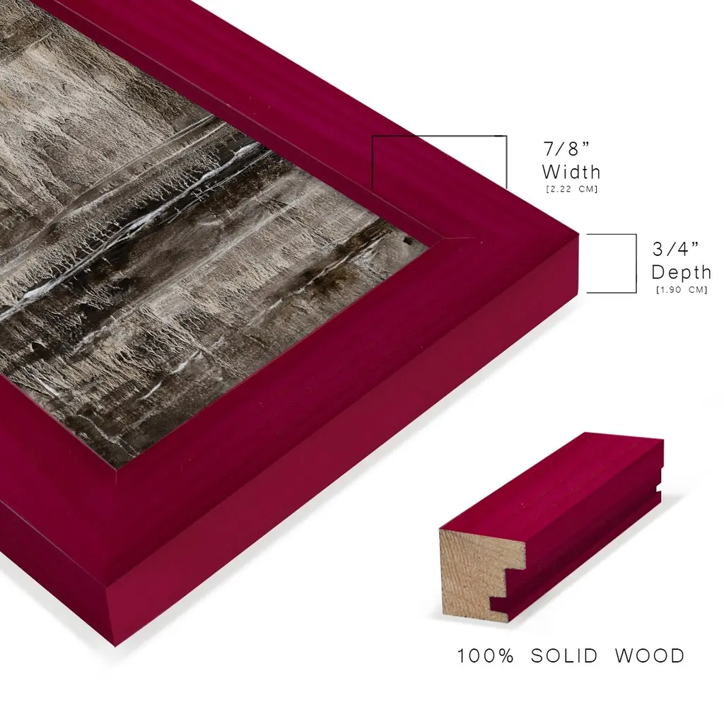 Continuum III -EZ SWITCH Framed Print w/glass-Cherry Red A delightful, framed print. Featuring a solid wood frame with real wood glass. This premium print is giclee quality. In addition, every frame features a removable back and table top stand. This allows you to change your art in the future or to just stand the art on a table for a new look. We are sure you'll enjoy our new series of EZ SWITCH Framed Art. Solid Wood Frame Real Glass Removable / Replaceable Art Built in Tabletop Stand Sizes range from 4x6 up to 12x15 - buy just one or pair them up as sets as you see fit.