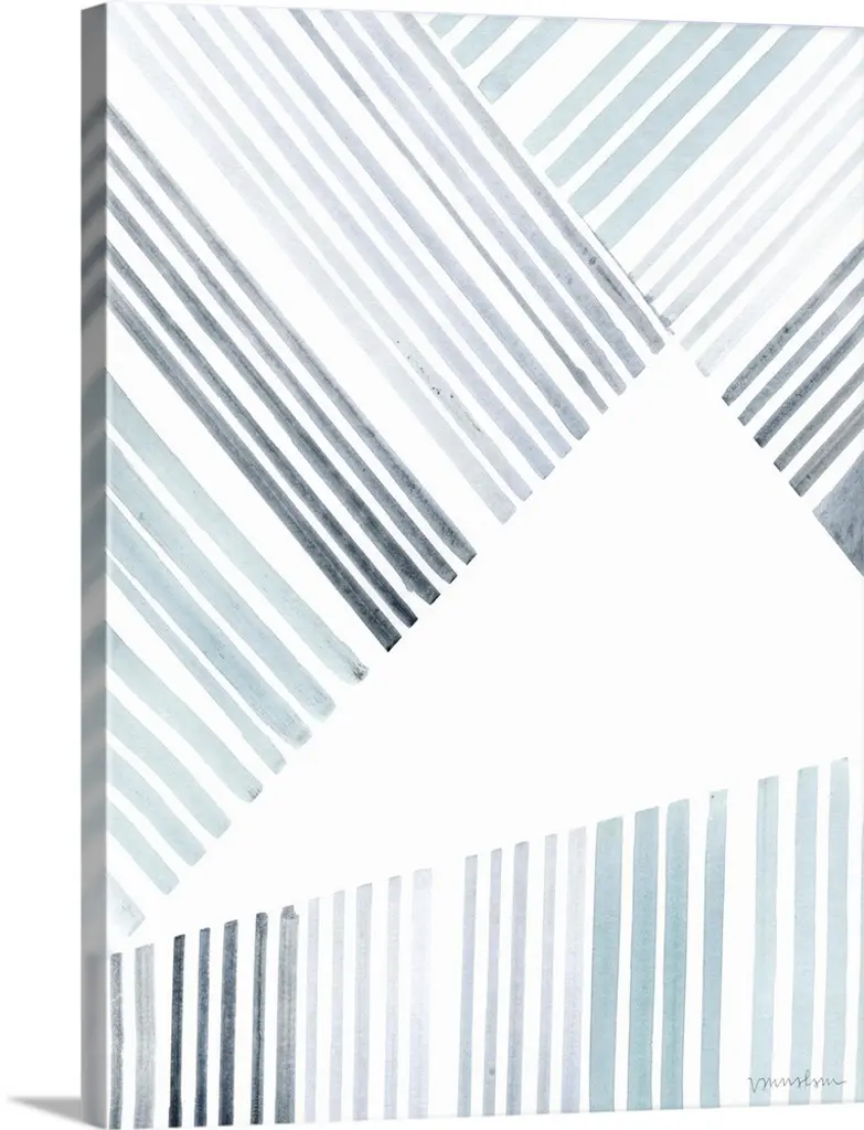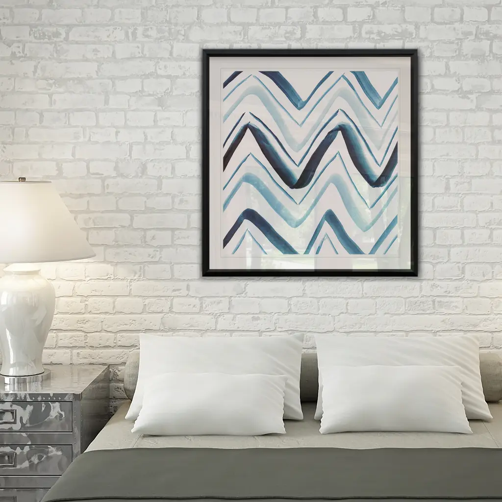 Designed by us and available only at One Kings Lane: This abstraction enlivens any wall with its composition of overlapping lines in shades of blue. Printed on matte paper, this piece is displayed under glass in a white wood frame and arrives ready to hang.