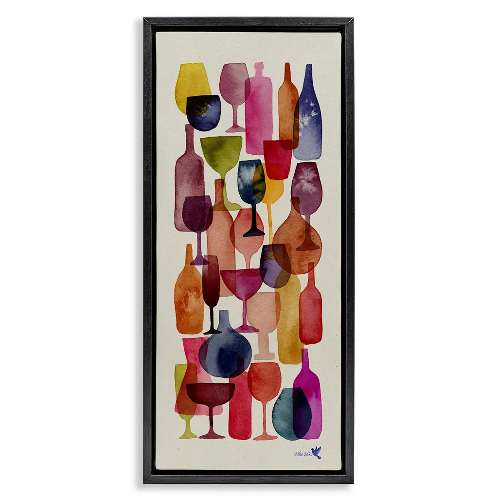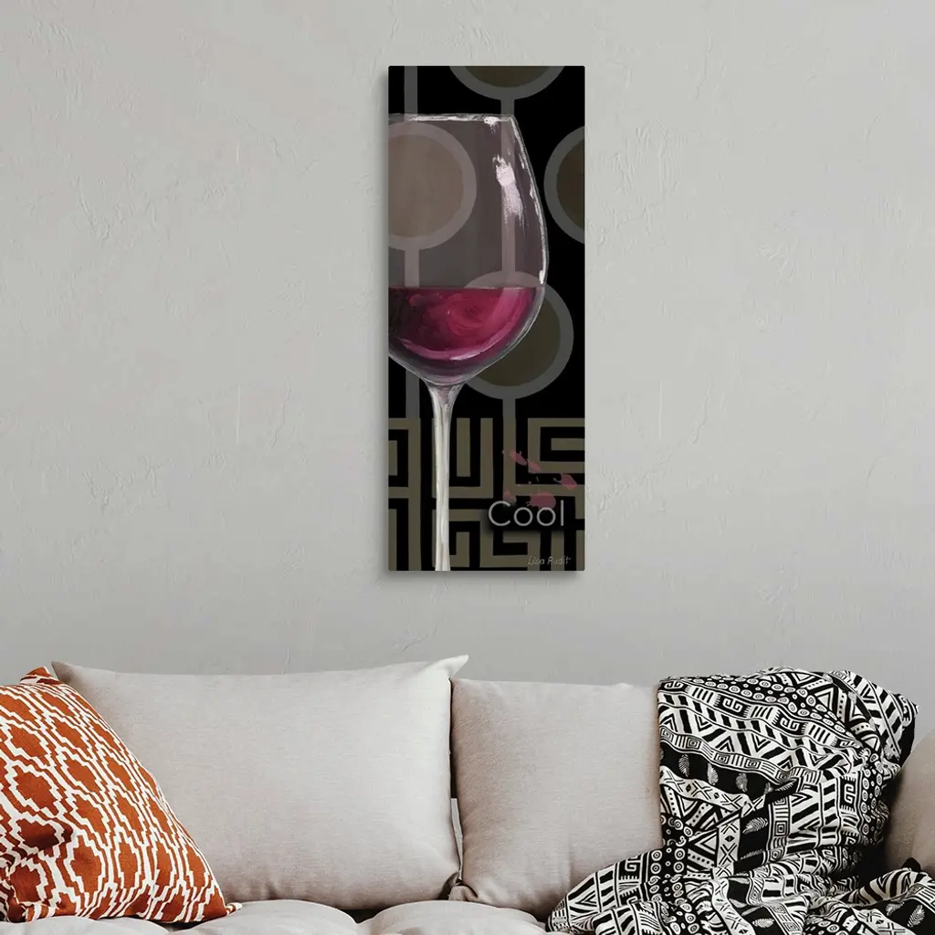 Vertical panoramic mixed media artwork of a glass of wine with the text "Cool," with a line and circle geometric pattern in the background.