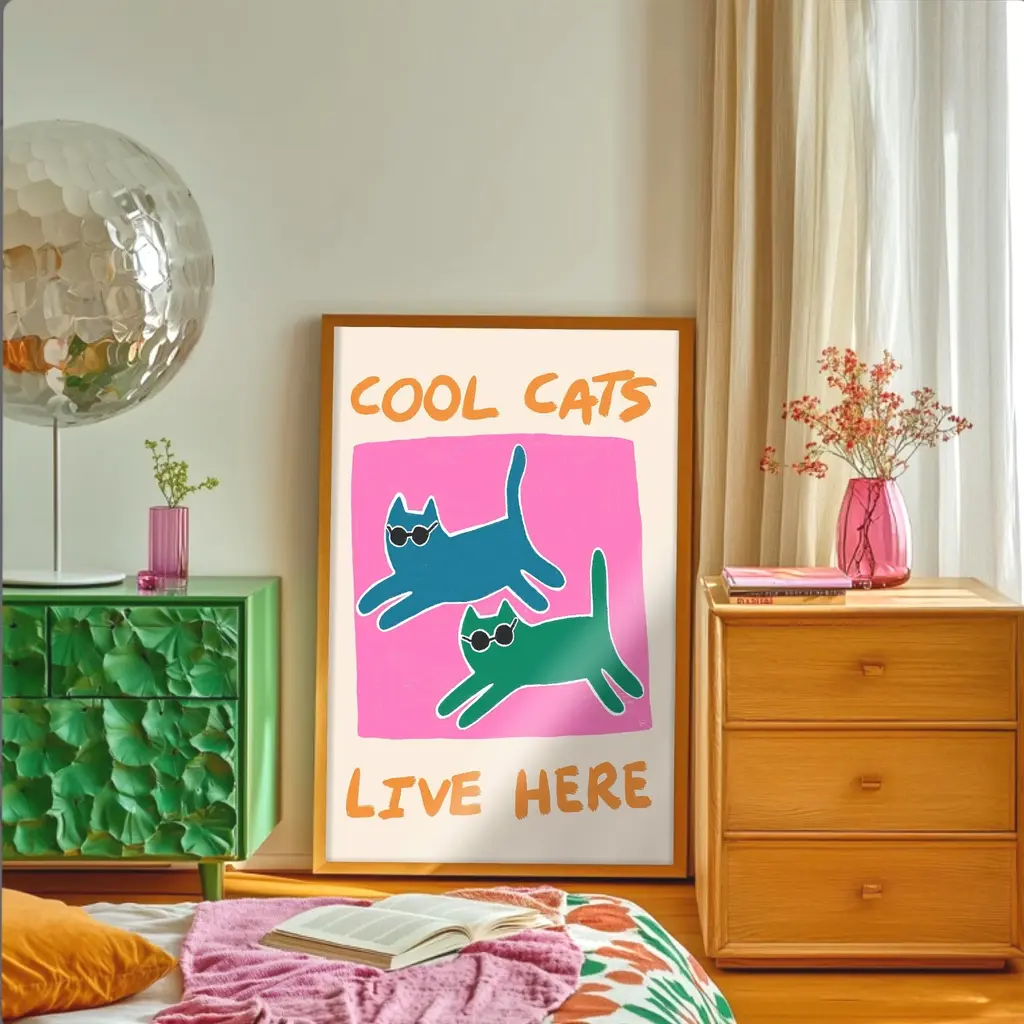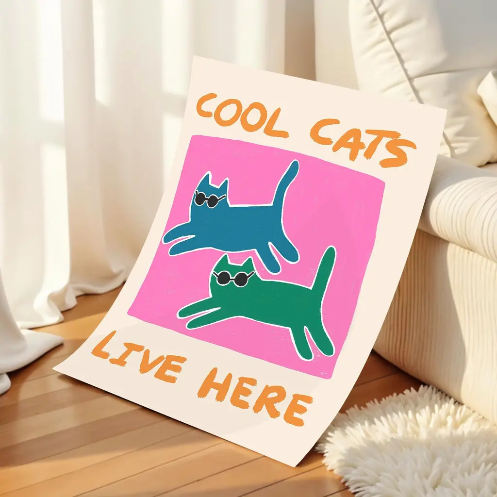 Cool Cats - Art Print - Medium Illustrated by Maria. This print is perfect for all cat lovers alike! Printed in the U.K.Printed on premium matte, fine art, archival paperPaper weight: 230 gsmSold without a frame.