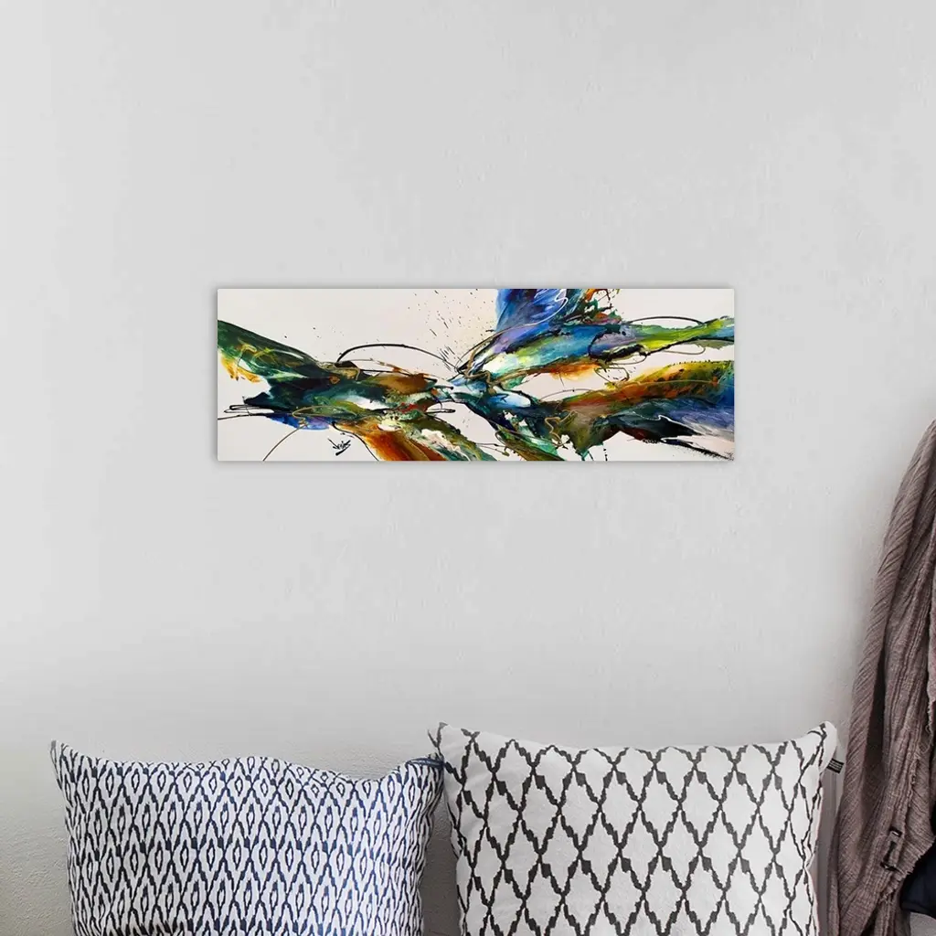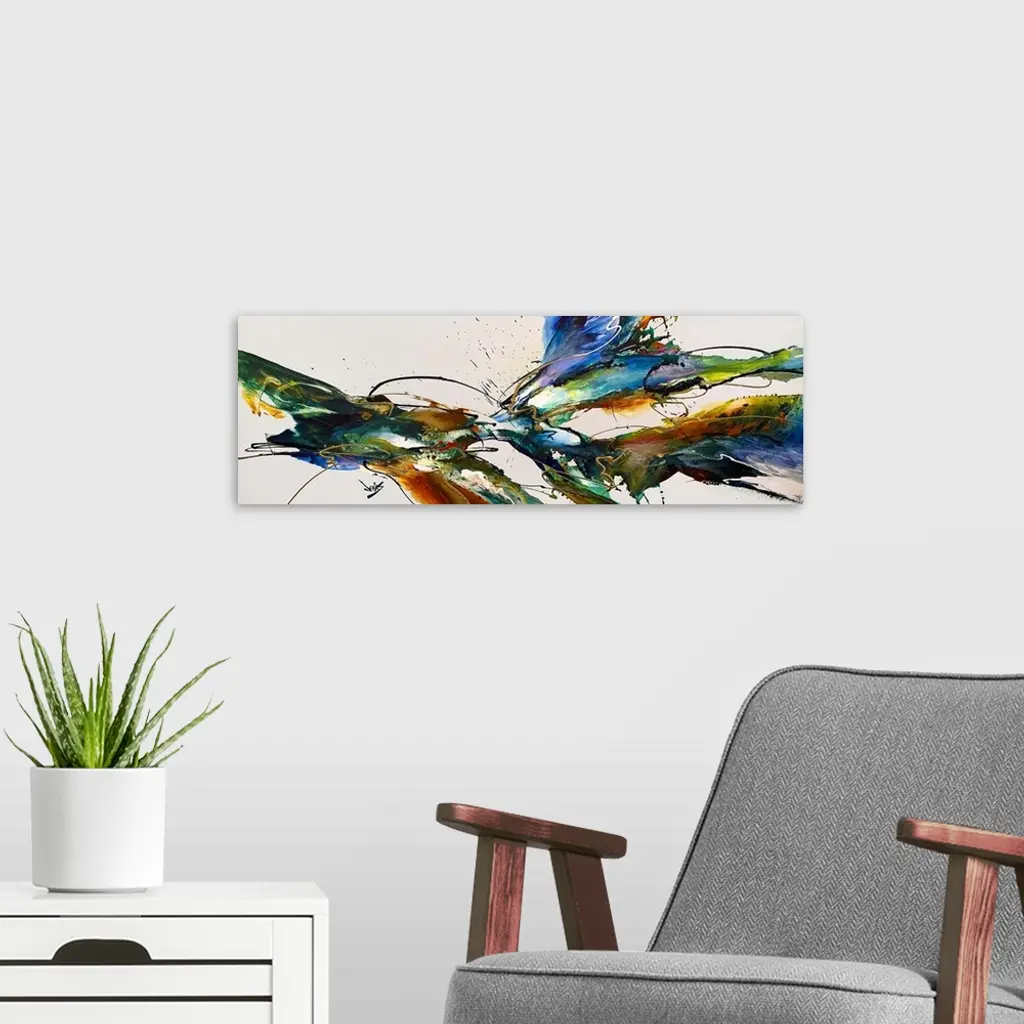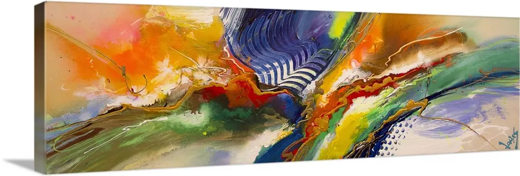 Contemporary abstract painting using a convergence of textures and tones spanning the gamut of color.