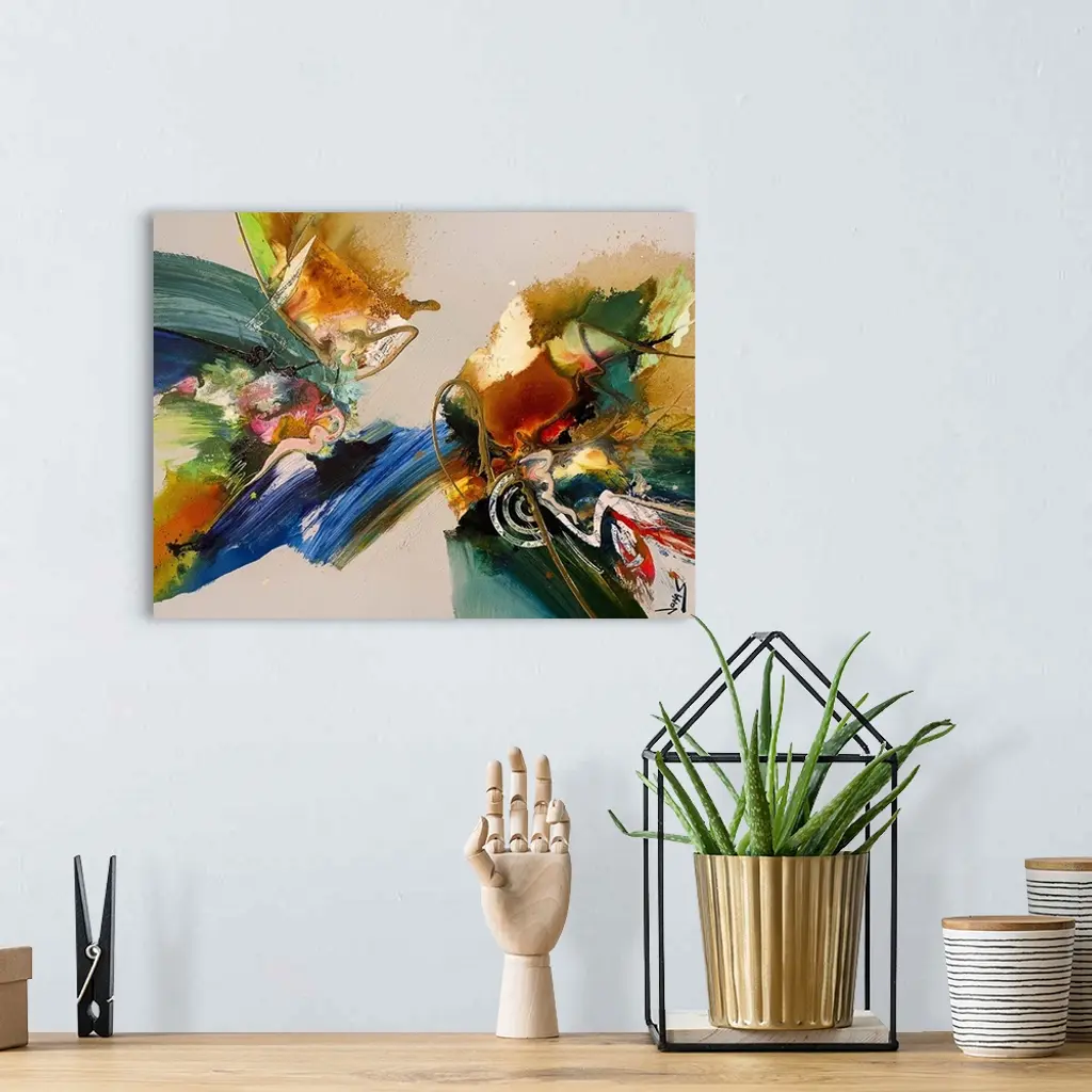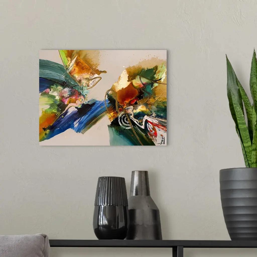 Contemporary abstract painting using a convergence of textures and tones spanning the gamut of color.