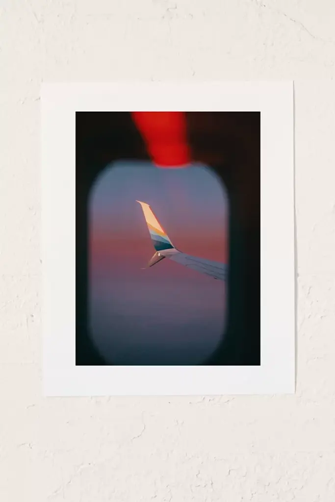 Art print by Cooper Pattison featuring a photograph of an airplane’s wing in flight. Printed on archival paper made from cotton pressed in Italian mills, this high-quality art print is available in sizes and frames just right for your space. First select your frame (or go frameless), then select your size.