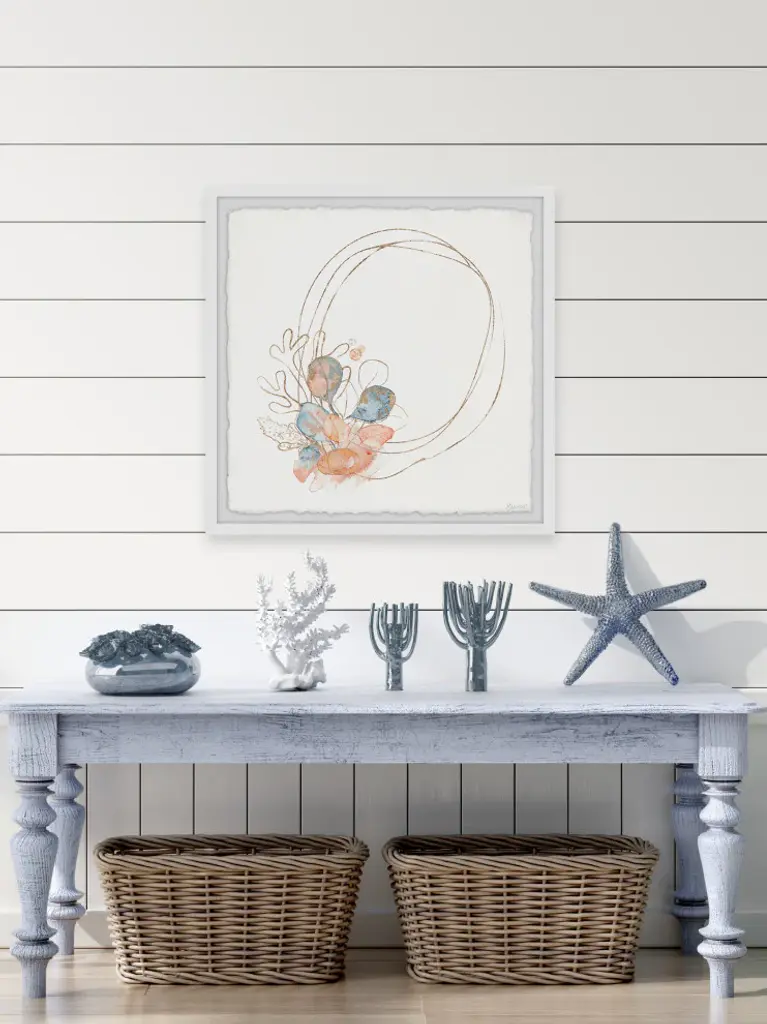 Inspired by the wonders of the ocean, this watercolor painting print features a bunch of colorful coral and gold rings. Proudly printed in the USA, this piece is printed on high quality archive paper and professionally hand-framed. With wall-mounting hooks included, this artful accent is ready to hang up as soon as it reaches your front door.- Top quality Giclee print on high resolution Archive Paper- Hand cut deckled edges- High quality durable non-warping frame- Finished under shatter resistant plexiglass- Arrives ready to hang- Includes a certificate of authenticity- Printed in the USA