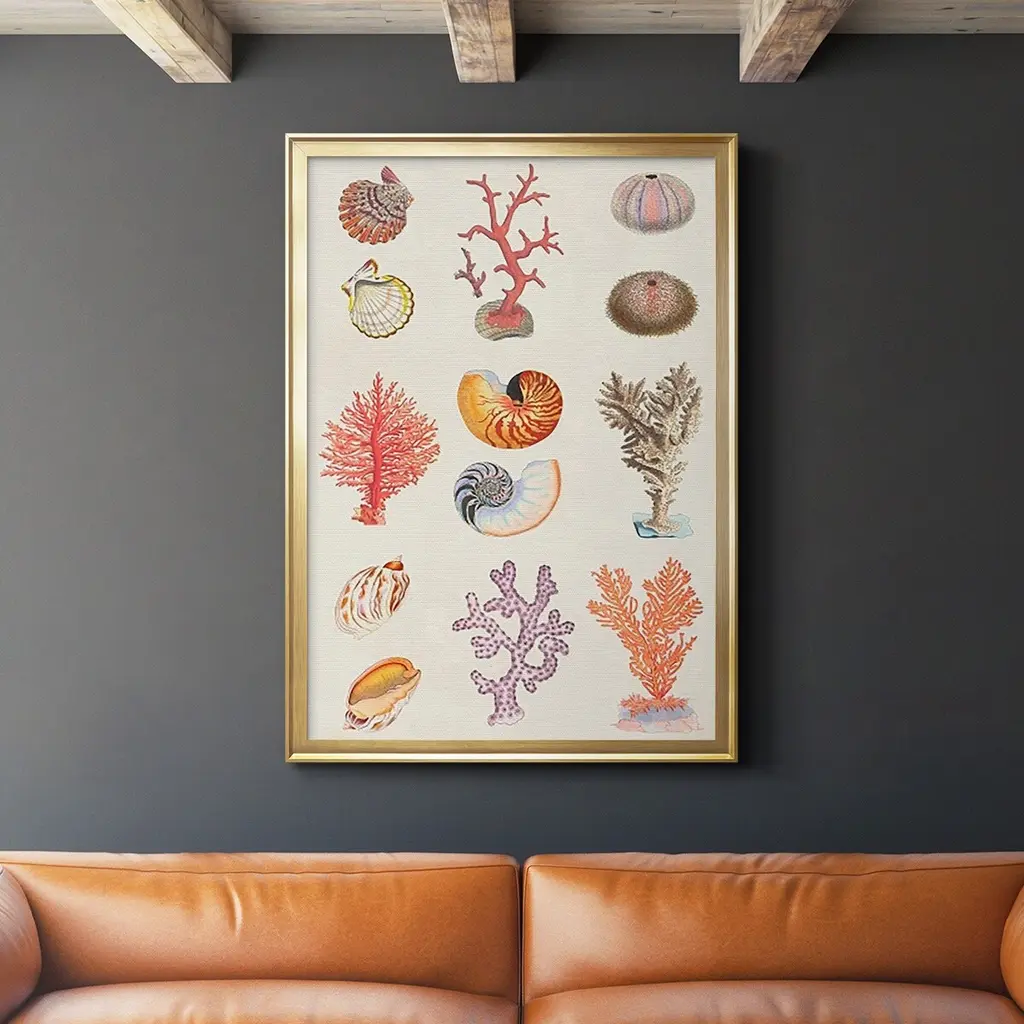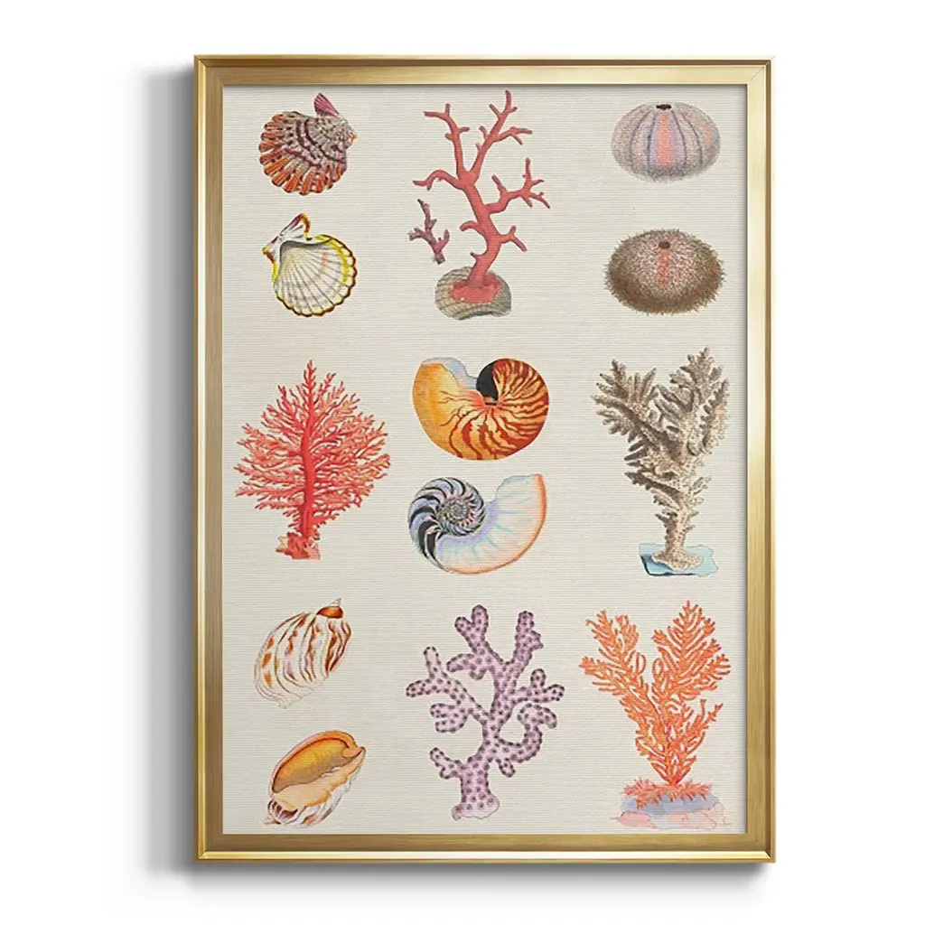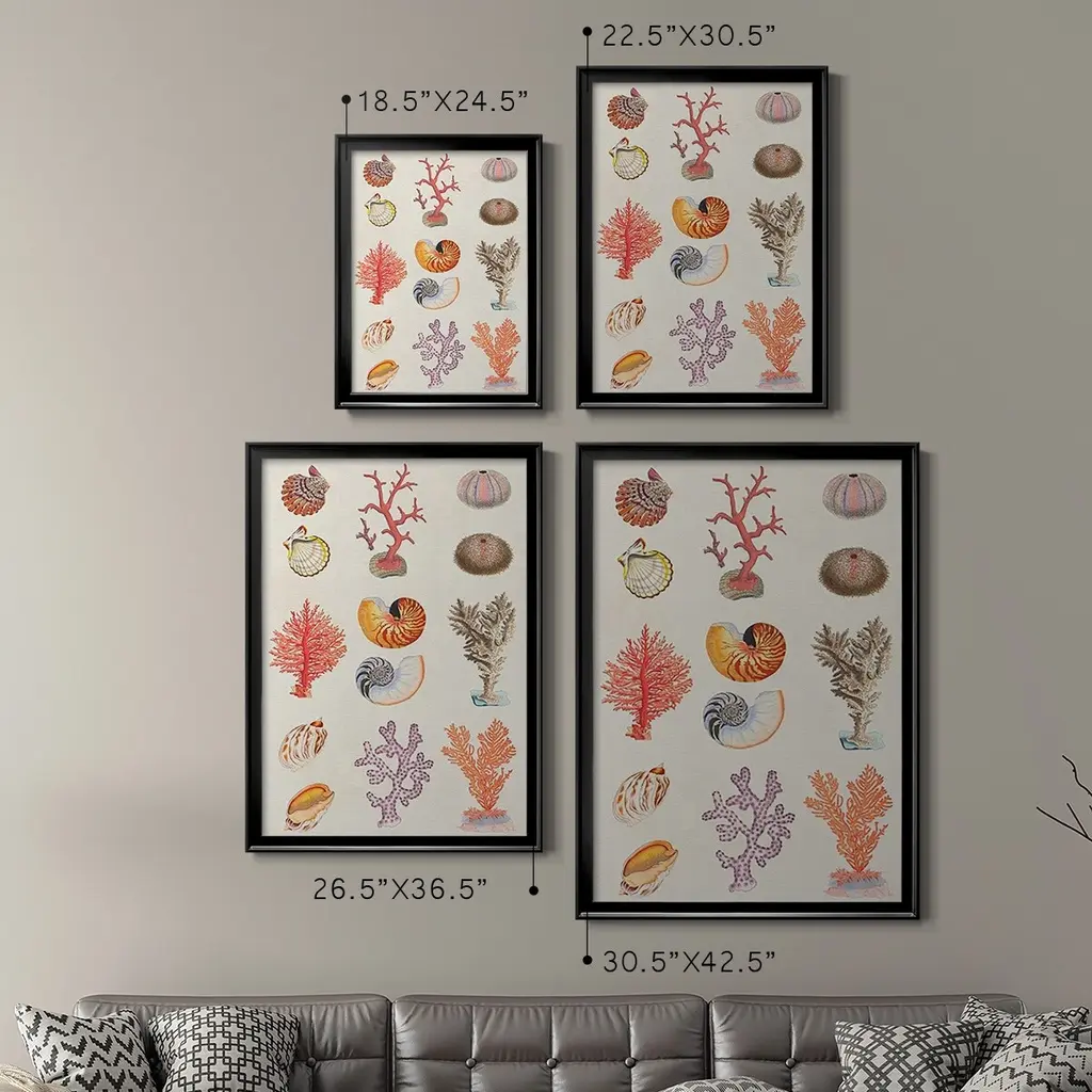 Coral & Shell Collage I Premium Framed Print - Ready to Hang A Premium Framed Print created to last. Framed in distressed wood and available in an array of sizes and colors Featuring a beveled a solid wood stretcher bar, each piece comes ready to hand 4 SIZES AVAILABLE 30.5''X42.5'' - Overall Size 26.5'X36.5'' - Overall Size 22.5''x30.5'' - Overall Size 18.5''x24.5'' - Overall Size Each piece is made to order. Each piece comes with hanging hardware. Made in the USA Ready to Hang