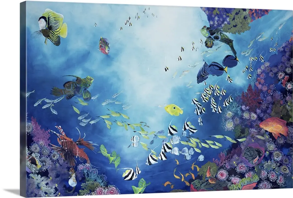 Coral Colony And Coral Fish, Seascape Photo Disc Metal Wall Art, 36"