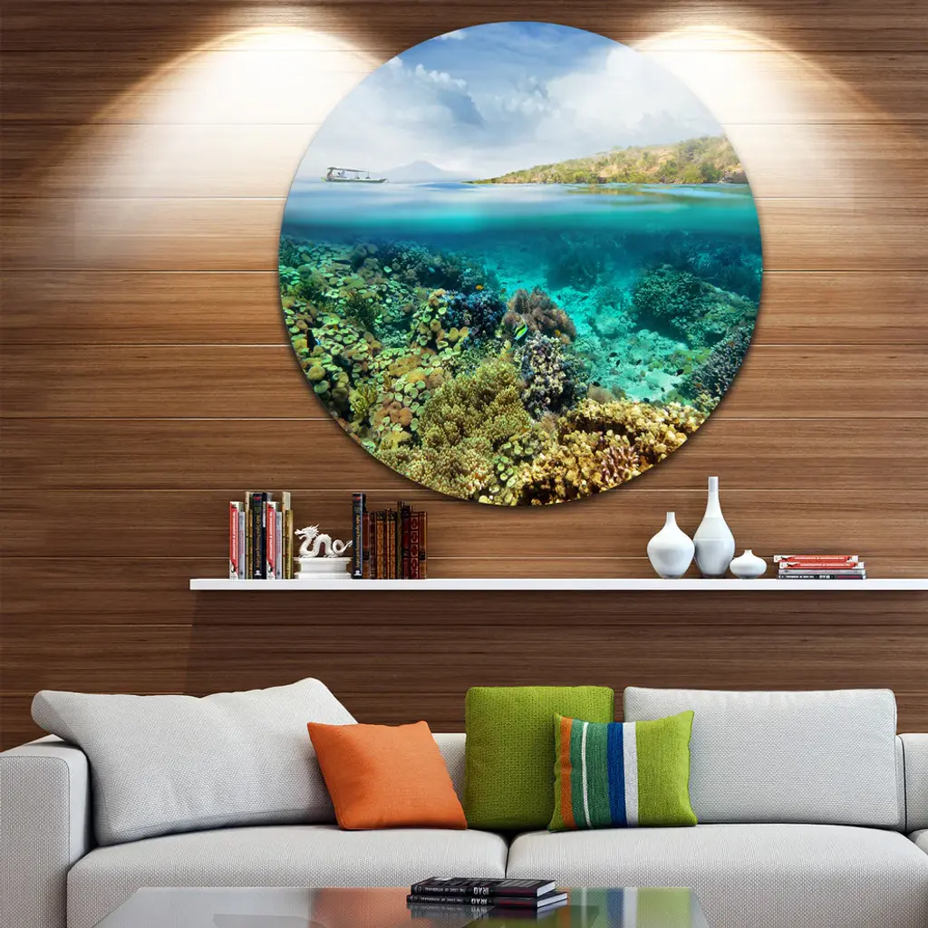 Coral Reef Island, Seascape Photo Disc Metal Wall Art, 38"