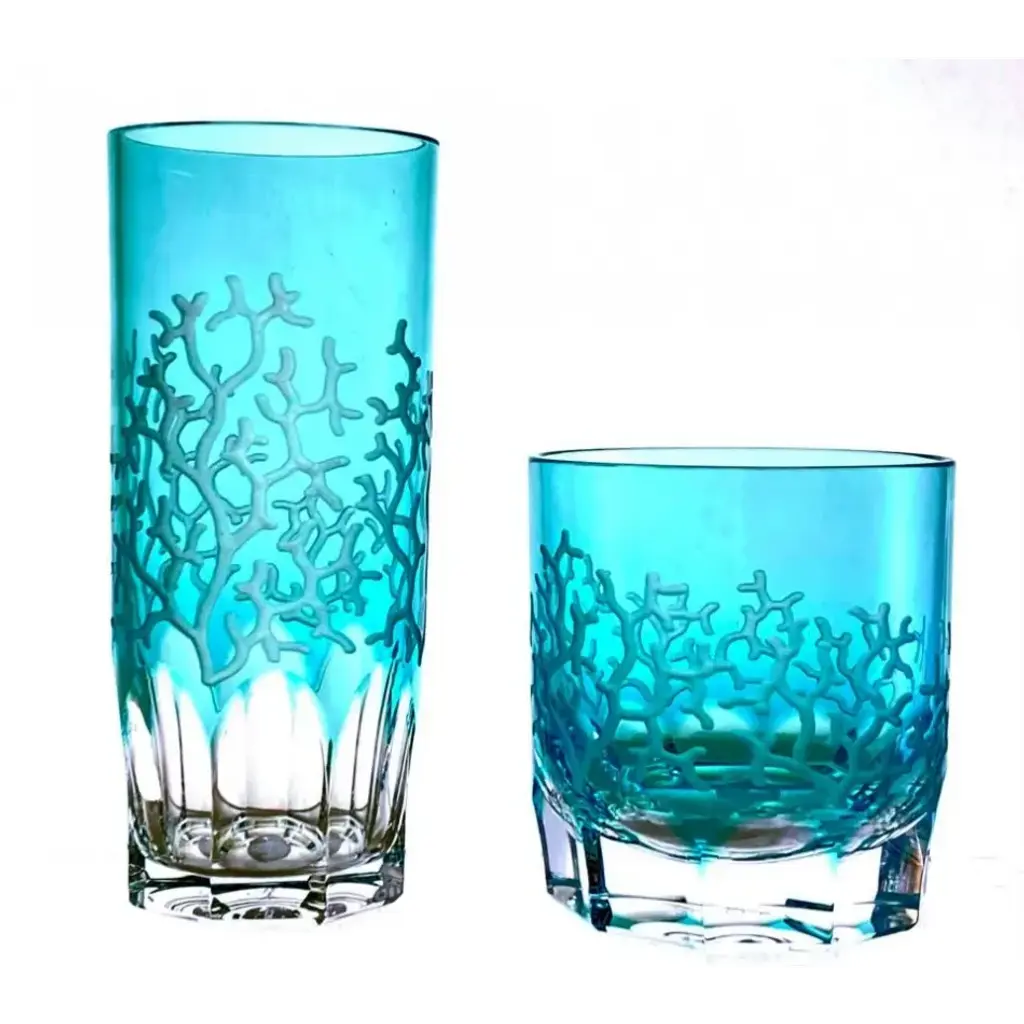 Coral reefs represent some of the world's most spectacular beauty spots. The Coral Collection will submerge you to the beauty of the oceans most precious world. Elegant lines of the shape supplemented by a unique skill of engravings of the coral world. Art aficionados applaud the superb craftsmanship and distinguished artistry found inherent in every piece of Varga Art Crystal. From the Varga design studios and forty person glassworks in Budapest, Hungary, famous husband and wife team Ildikó and Sándor Varga – a third generation glass master – create crystal artwork that graces palaces, embassies, museums and celebrity homes around the globe. Each piece of Varga is an original – skillfully and creatively crafted entirely by hand. Each hand-cut stem or intricately engraved crystal masterpiece is individually signed by hand and may require months to craft. Imagine an artist moving his canvas against a fixed brush to create his masterpiece: this is the essence of the rare art of copper and diamond-wheel engraving that is practiced today only by a handful of highly skilled craftsmen.