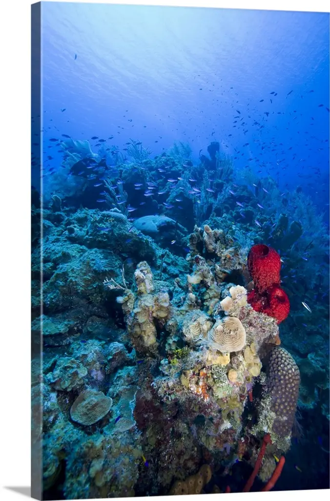 Corals And Fish In Komodo National Park, Seashore Canvas Art Print, 60"x28"