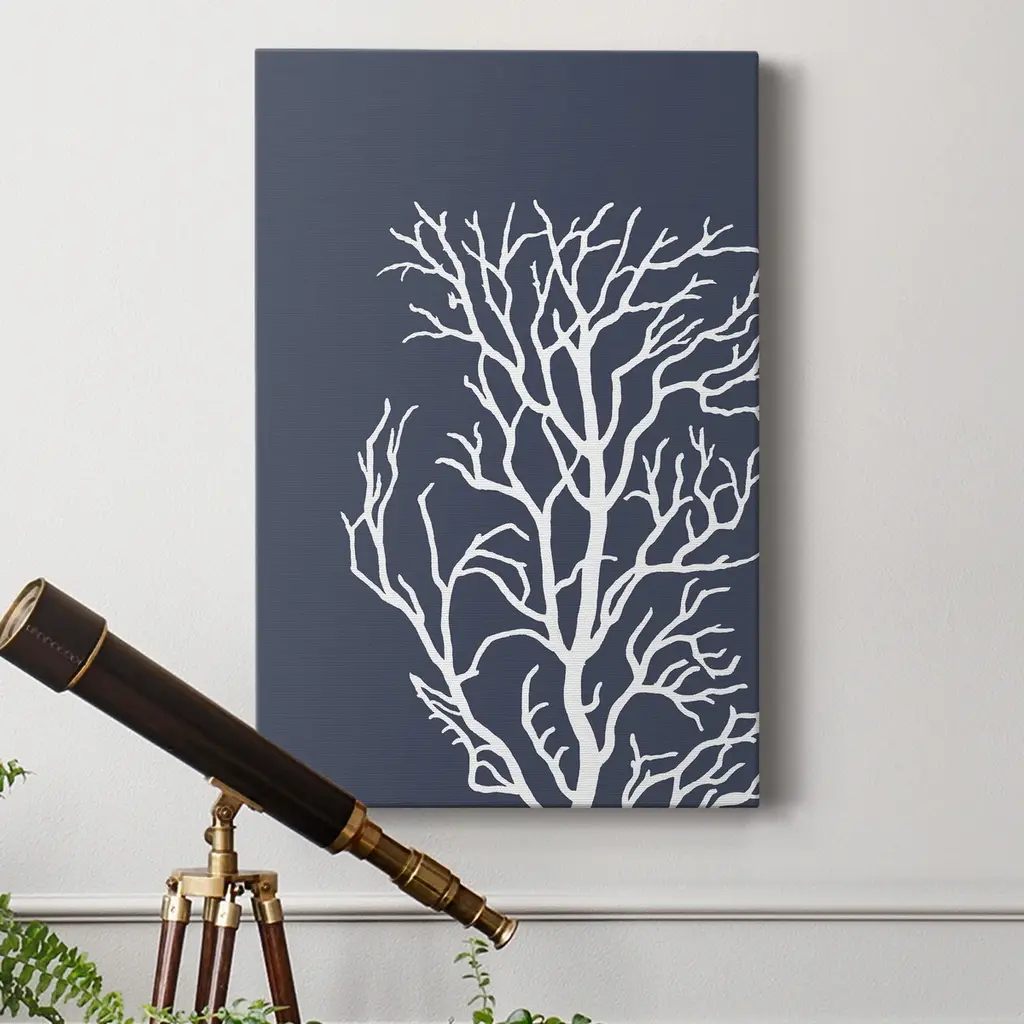 Corals White On Indigo Blue C Premium Gallery Wrapped Canvas - Ready To Hang - 18x27