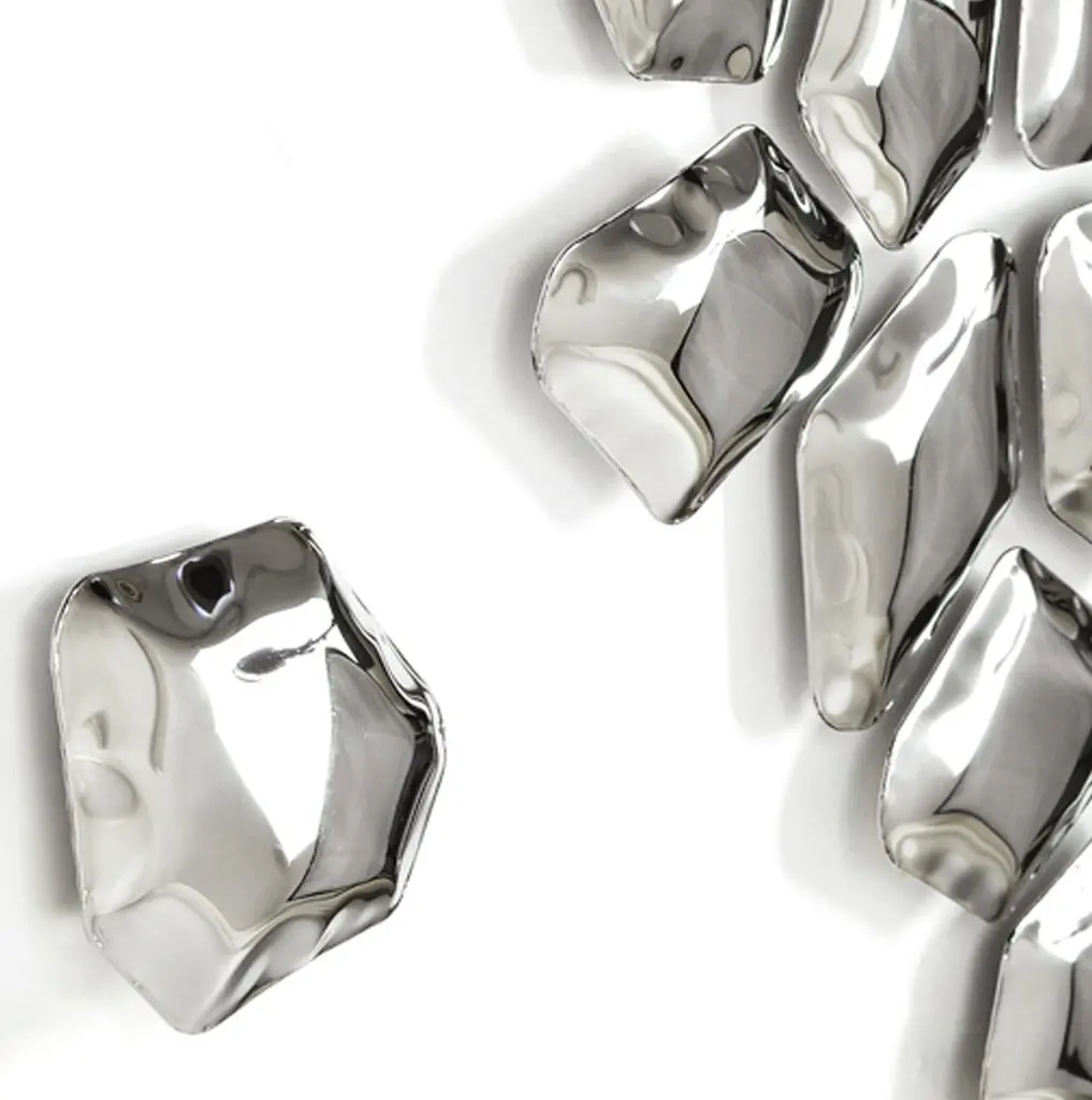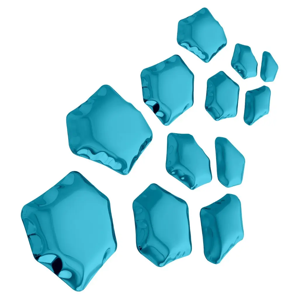 Cosmic Blue Set of 6 Kamyki Wall Decor by ZietaDimensions: Diameter 7 x H 20 cm Material: Stainless steel. Finish: Thermal colored.Available in finishes: Stainless Steel, Deep Space Blue, Emerald, Saphire, Saphire/Emerald. Also available in sets of 12 or 18 pieces. KAMYKI is a series of steel geometric objects of various sizes and shapes made in FiDU technology. One can use them as functional wall hangers or contemporary wall decoration. Their unique, yet repeatable shapes, offer a wide range of arrangements options. Each set can be organized on a wall in endless compositions.KAMYKI is made of stainless steel polished to high gloss which gives them a very adorable look when mounted together to the wall to create a special pattern or design. They are often used to decorate the reception entrances, halls or bare and minimalist-structured walls inside or outside of a building. They come in different diameters from 7 to 20 cm. Thus, they can be easily adjusted according to the customer´s needs.About Zieta: Zietas main goal is to deliver uniqueness and customization in design and construction while keeping the production, transport, and warehousing innovatively efficient.This is how they imagine the future world: Light, durable structures of customized applications produced on demand out of one-of-a-kind parts, yet efficiently.They use a computer-controlled production process. Customized pattern, customized form, customized function, one-of-a-kind product, and outstanding precision are what they deliver.You will find all of this philosophy reflected in the products. The research, they discover new possibilities, they play with forms and they deliver a beautiful, innovative, surprising outcome to people who love the design and who care about design development.They believe their work is a valuable contribution to the world of design not only by the unique beauty of the forms but most of all by opening ultra-innovative opportunities of forming and new paths for the world of the future. __