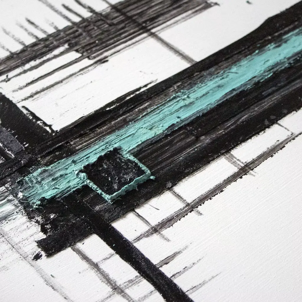 Abstract and contemporary, this unique mixed media artwork interprets connections between people and their surroundings within the architectural and emotional frames. Part of the "Contemporary Constructions" series by Mirko Demattè, it embodies motion and transformation, flexibility in its vivid yet vanishing brushstrokes of enamels and oxides, enriched with paper details.