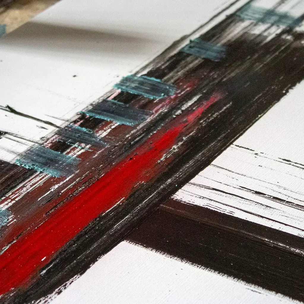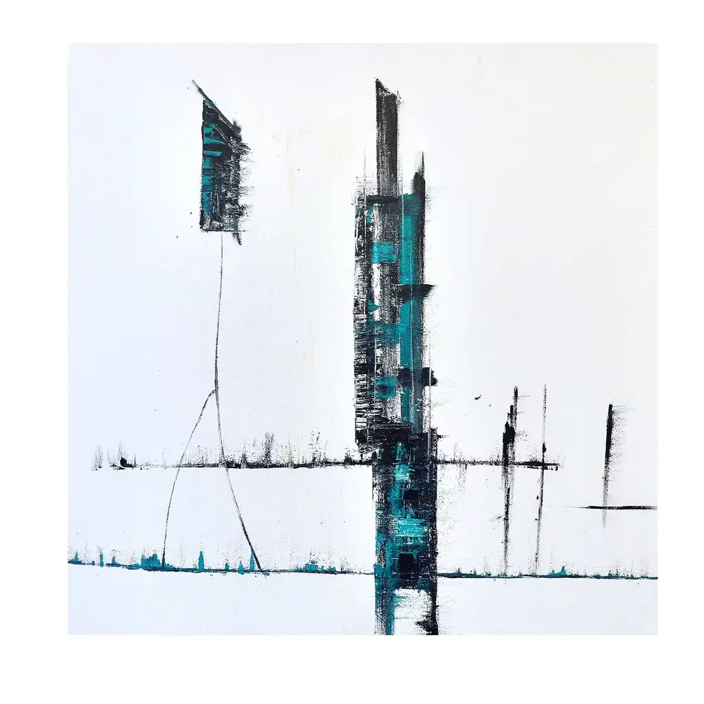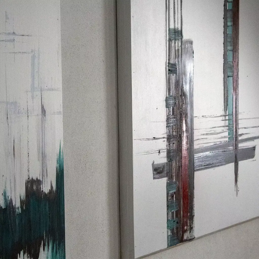 An abstract interpretation of connections between people and their surroundings within the architectural and emotional frames, this splendid mixed-media artwork embodies motion and transformation, flexibility. Distinguished by vivid yet vanishing brushstrokes of enamels and oxides, it belongs to the "Contemporary Constructions" series by Mirko Demattè.