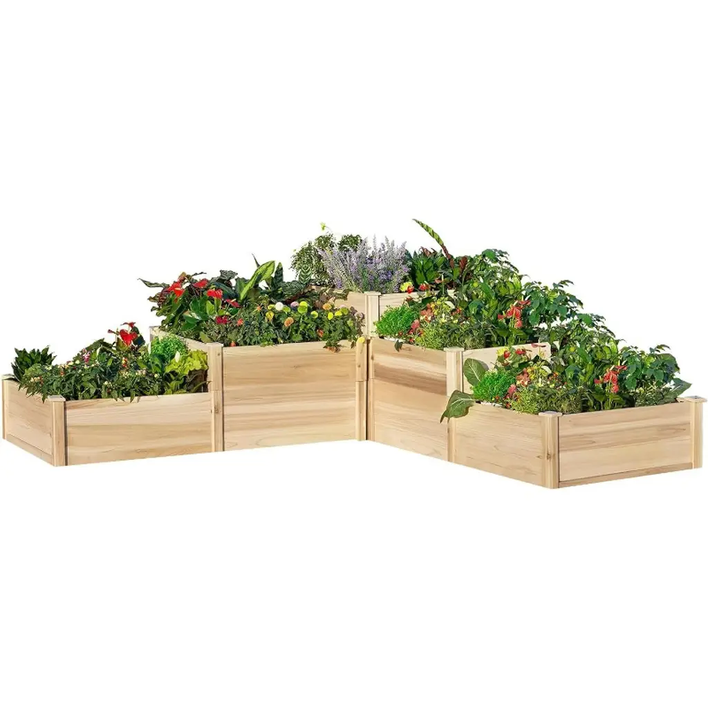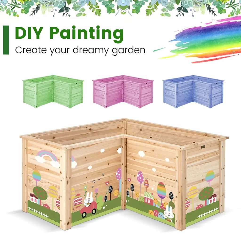Make Your Gardening Work Easier! Our tall elevated garden bed with a unique L shape measures 47.5'' x 47.5'' x 24.5'' (L x W x H), allowing you to cultivate various plants, such as flowers, herbs, vegetables, fruits, and more. And thanks to the heightened design, our planter box is perfect for growing plants or saplings with long roots. Besides, it adopts an open-ended base, which is great for water drainage, soil conservation, and root development. The wooden planter box is crafted with 100% solid fir wood, which is not easy to deform or absorb water, ensuring long-lasting durability. Other than that, you can stylish your garden planter box with your imagination, creating a perfect addition to your garden!FeaturesProvides a large L-shaped planting area, suitable for different plants to grow Made of natural fir wood, sturdy and sturdy enough, not easy to deform The wooden surface has been polished, preventing scratches caused by wood chips The open-ended base promotes water drainage and allows plants to grow freely 24'' Depth, deeper than normal planter boxes, suitable for long-root plants The wood surface can be painted with different-color paintings or various patterns Equipped with thick wood boards and sturdy screw connection, make it stablerColor: Natural Material: Fir Wood Overall Dimensions: 47.5'' x 47.5'' x 24.5''(L x W x H) Net Weight: 43 lbs Package Includes: 1 x Wooden Raised Garden Bed 1 x User's Manual