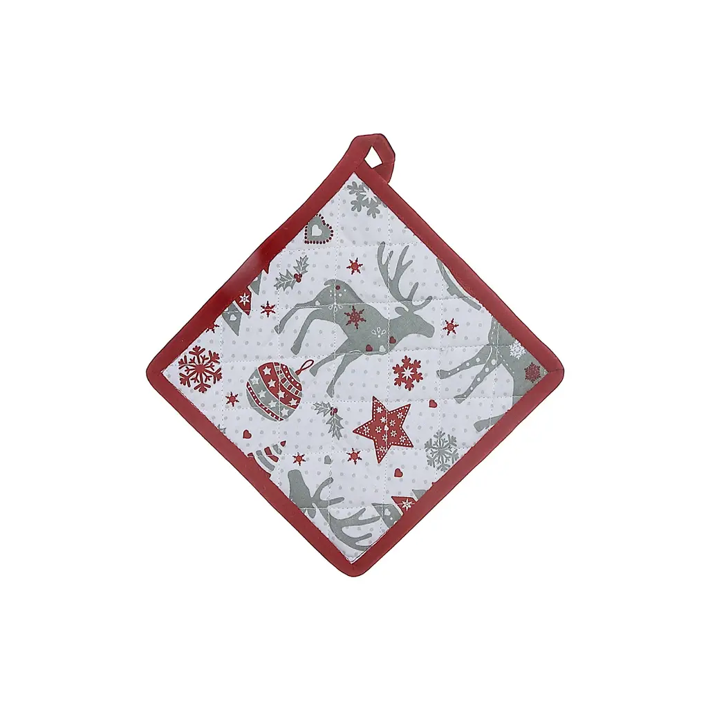 Elevate your kitchen decor with our delightful and charming reindeer Cotton Pot Holder (Reindeer). Crafted from soft and absorbent cotton, these pot holders not only shield your hands from heat but also bring a touch of nature-inspired beauty to your culinary space. Featuring captivating reindeer artwork, each piece adds a whimsical flair to your kitchen routine. Sold as a set of two, these multi-color pot holders combine functionality with design, making them essential accessories for any cooking enthusiast's collection.