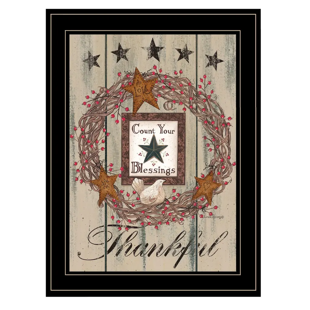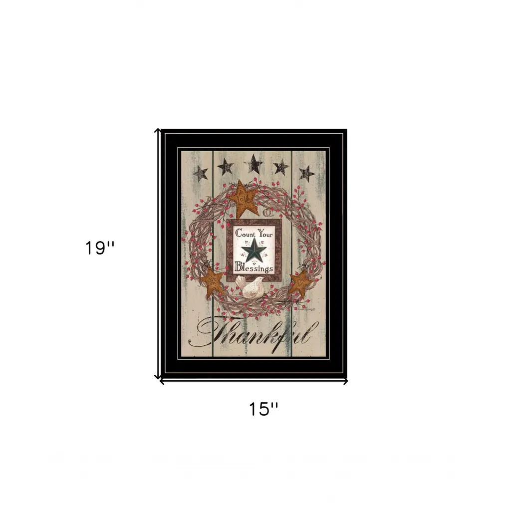 This count your blessings 2 black framed print wall art will add a beautiful decorative accent to your decor. This print is a visual artistic expression that allows you to decorate your space in style. Reproduced for you on paper, this hanging decorative accent will be a trendy and fashionable way to dress your walls. Hang on your wall to add some up to date fashion and decoration. Utilize this opportunity to create a focal point in the room with this fabulous wall decor option. 19" H x 15" W x 1" D