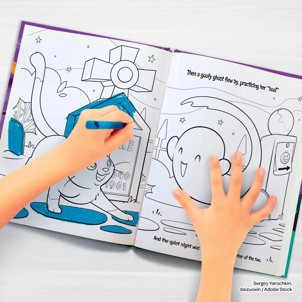 Bring a little creativity to story time with Bendon's Counting Our Way to Halloween Color and Read Along Storybook! This book contains adorable artwork to color accompanied by simple, easy-to-read text and a sturdy hard cover. The little artist in your life will love to custom color their storybook as you read along together. Standard trim size for this item is 7.25 inches x 9.25 inches.