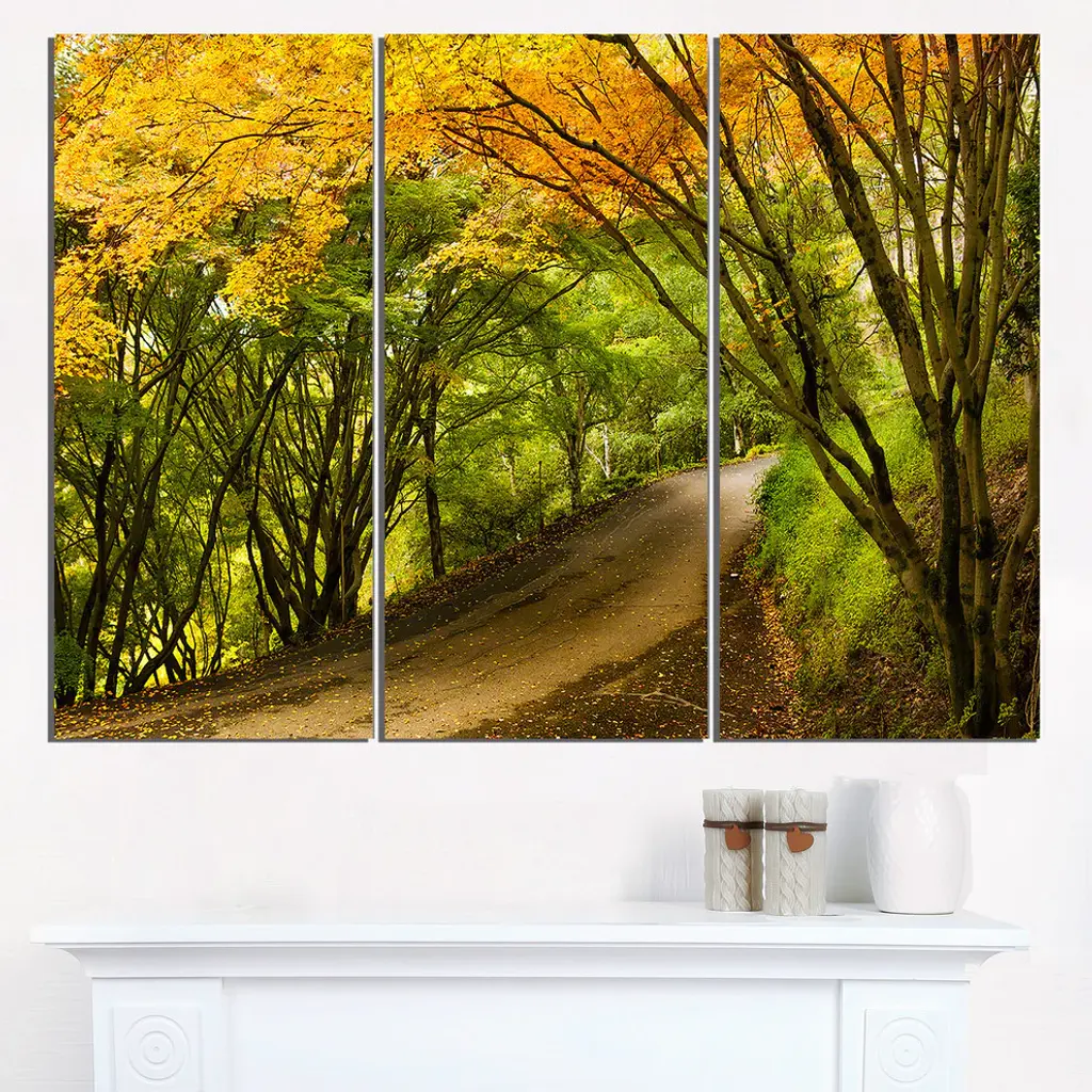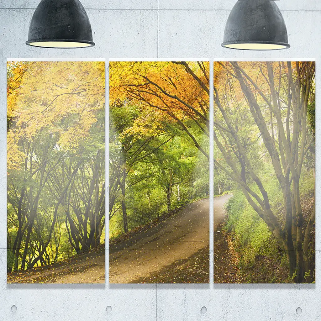 "Country Lane In Green Forest" Metal Landscape, 3 Panels, 36"x28"