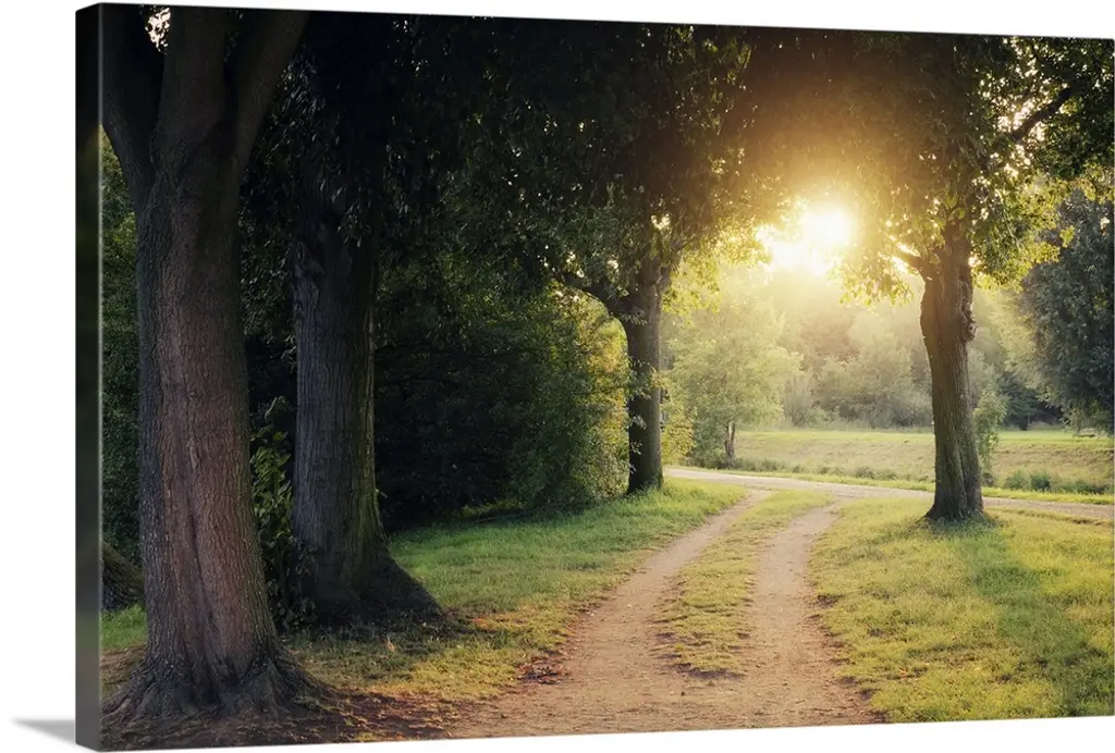 "Country Road Below Green Trees" Landscape Canvas Photo Print, 32"x16"