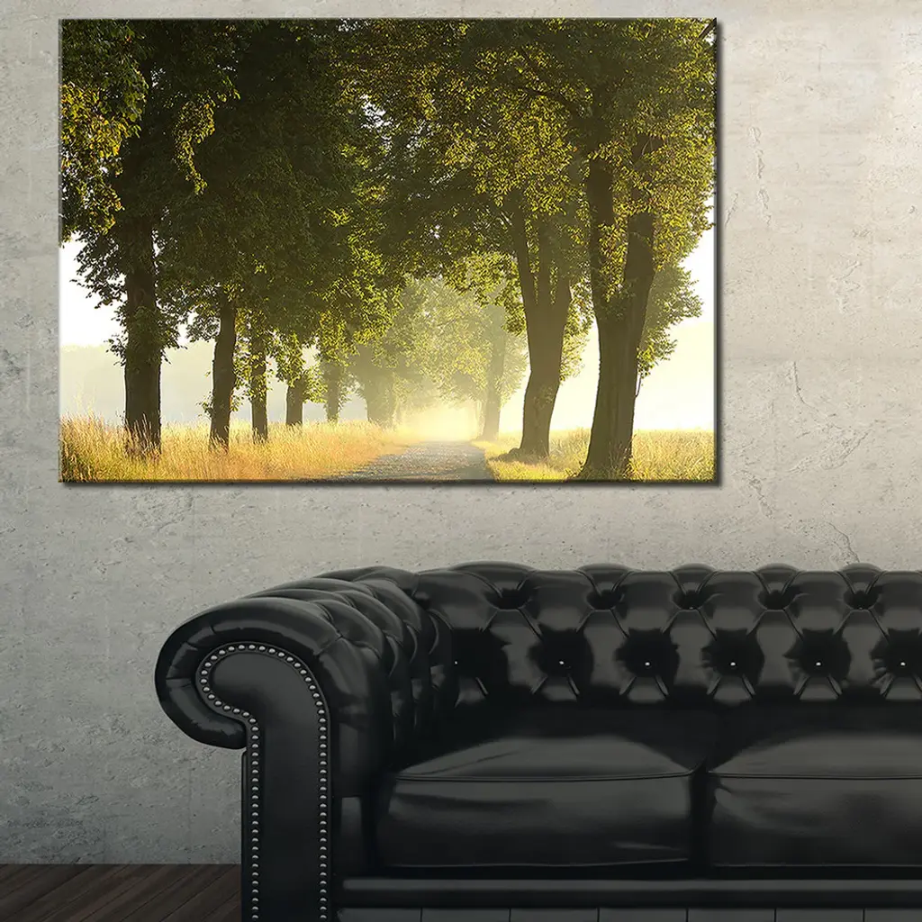 The Country Road Below Green Trees canvas art print is sure to make an impression on anyone who sees it. This artwork is gallery wrapped around a 1-inch solid wood frame and arrives carefully packaged and entirely ready to hang on the wall. Design Art only uses the highest resolution and pigments to ensure a crisp colorful print that is never faded or pixelated. This artwork is sure to be a conversation starter in any home or office.