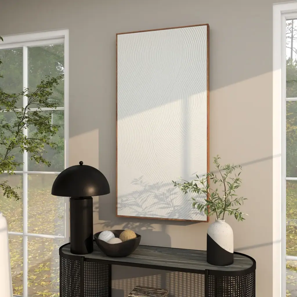 This wall art brings a calming feel to your space with a modern aesthetic that elevates the vibe. It's printed with premium inks on wrapped canvas for a gallery-worthy look. The design features curving, overlapping lines in a clean white hue for a subtle motif that still adds visual dimension. We love that this wall art comes with mounting hardware, so it's ready to hang right out of the box. Arrange it over your sideboard, sofa, or headboard for a chic update.