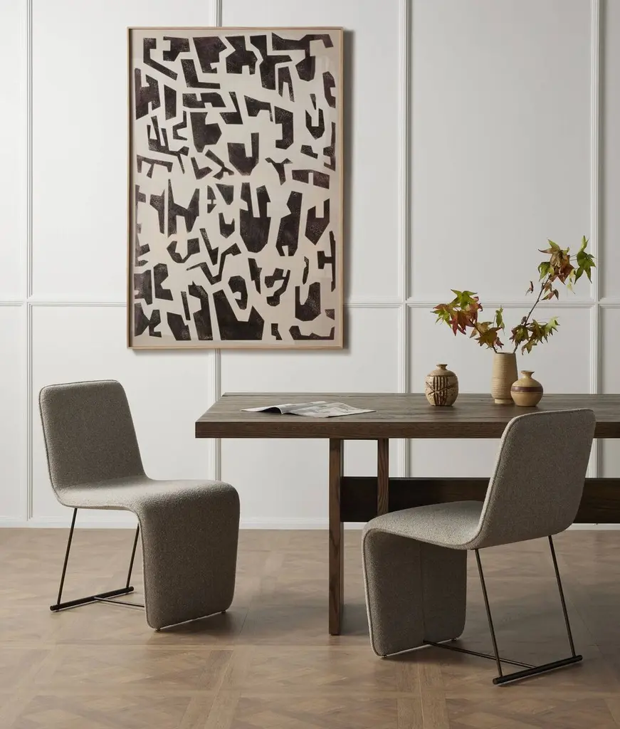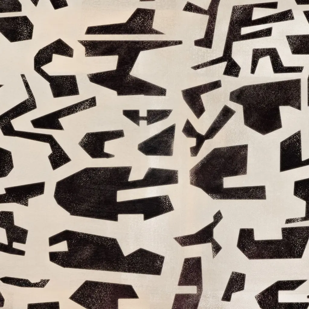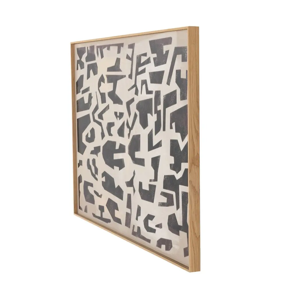 A Bangkok-based art house devoted to pioneering a unique brand of digital artisanship. Their works are created using an applied fusion of hand and machine, merging traditional handcrafted techniques with modern rendering technologies. Primitive shapes float throughout this piece, brought to life on a wood panel with a spot gloss treatment. Handmade in Austin, Texas.