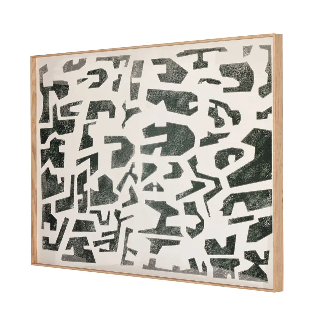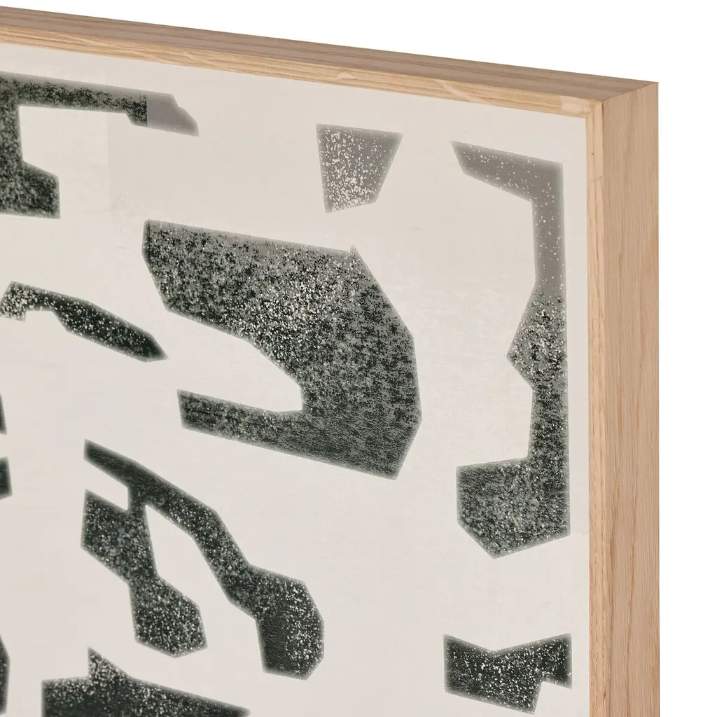 A Bangkok-based art house devoted to pioneering a unique brand of digital artisanship. Their works are created using an applied fusion of hand and machine, merging traditional handcrafted techniques with modern rendering technologies. Primitive shapes float throughout this piece, brought to life on a wood panel with a spot gloss treatment. Handmade in Austin, Texas.