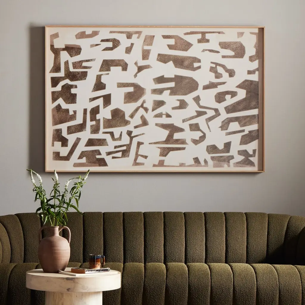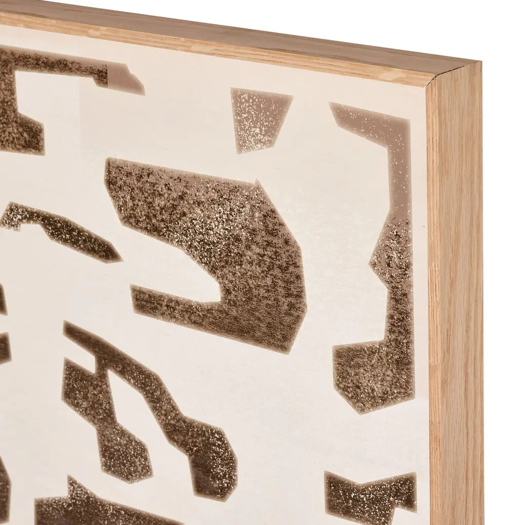 Primitive shapes float throughout this piece by a Bangkok-based art house. Wood panel with spot gloss treatment to further bring this piece to life. Handmade in Austin, Texas.