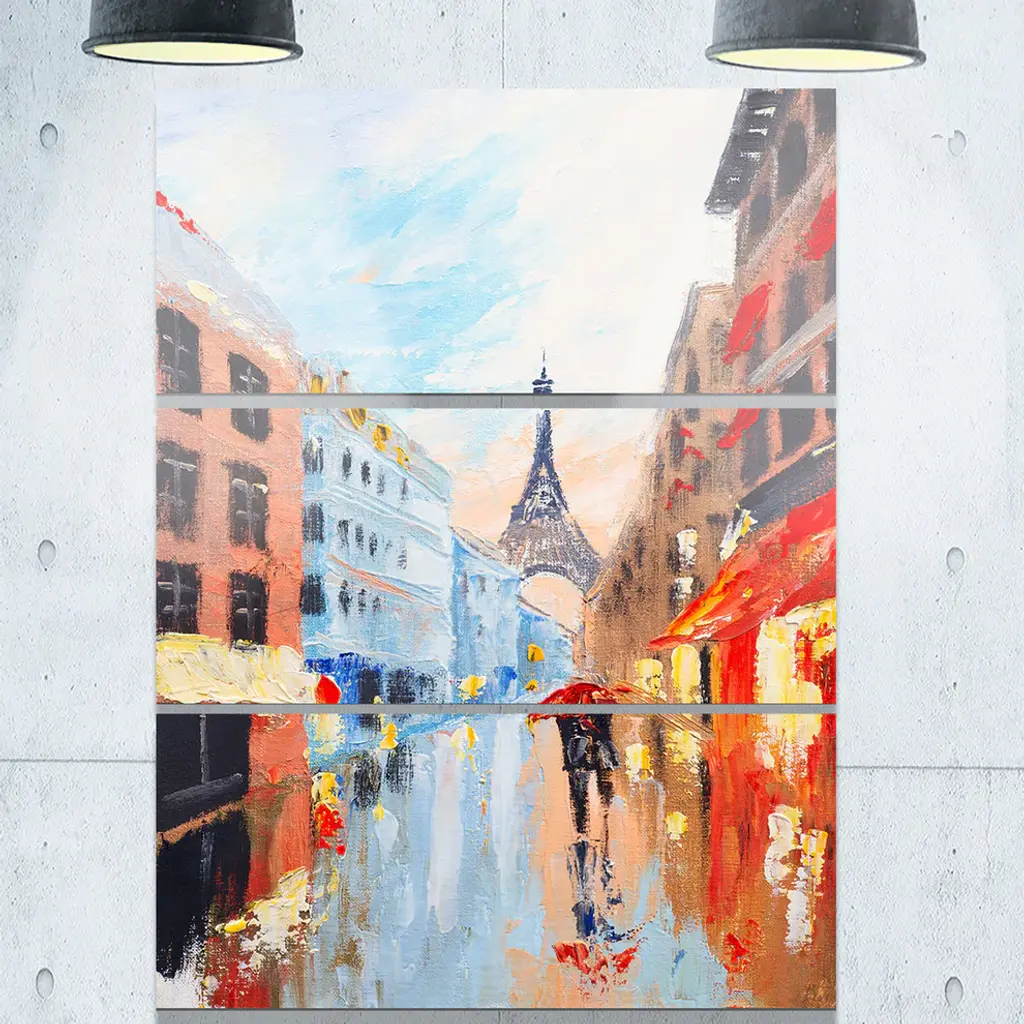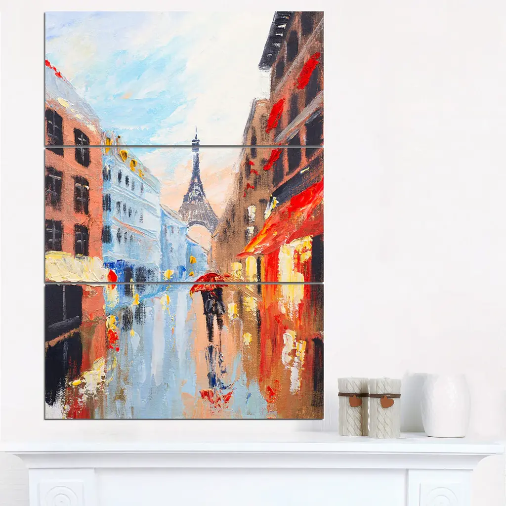 "Couple Walking In Paris" Glossy Metal Wall Art, 3 Panels, 28"x36"