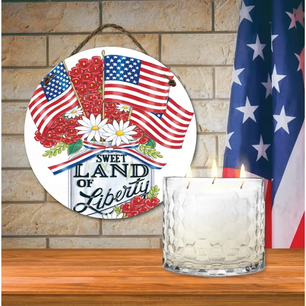 Courtside Market 13.5 Oz, 3 Wick Citronella Candle & Land Of Liberty Mason Jar 10x10 Hanging Artboard Set