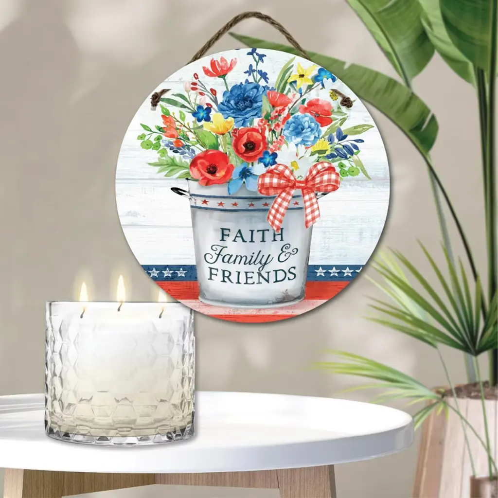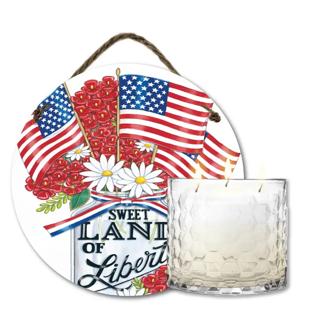 Courtside Market 13.5 Oz 3 Wick Citronella Candle & Patriotic Flowers I 10x10 Hanging Artboard Set