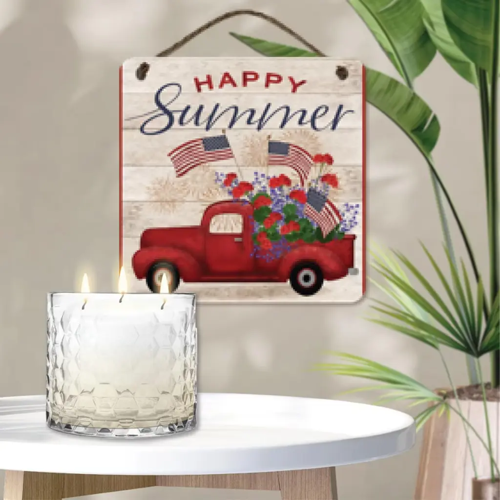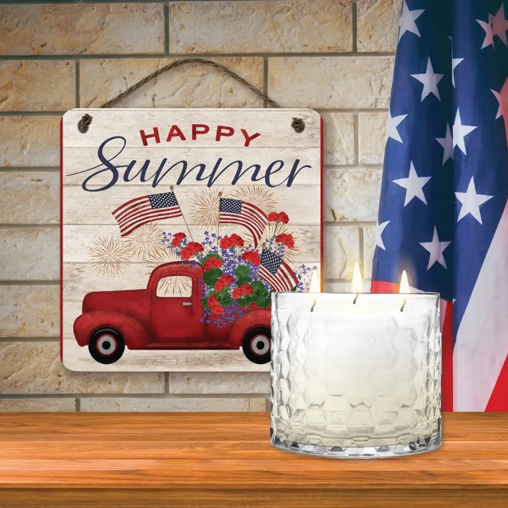 Courtside Market 13.5 Oz, 3 Wick Citronella Candle & Truck Patriotic Flower & Flags 10x10 Hanging Artboard Set