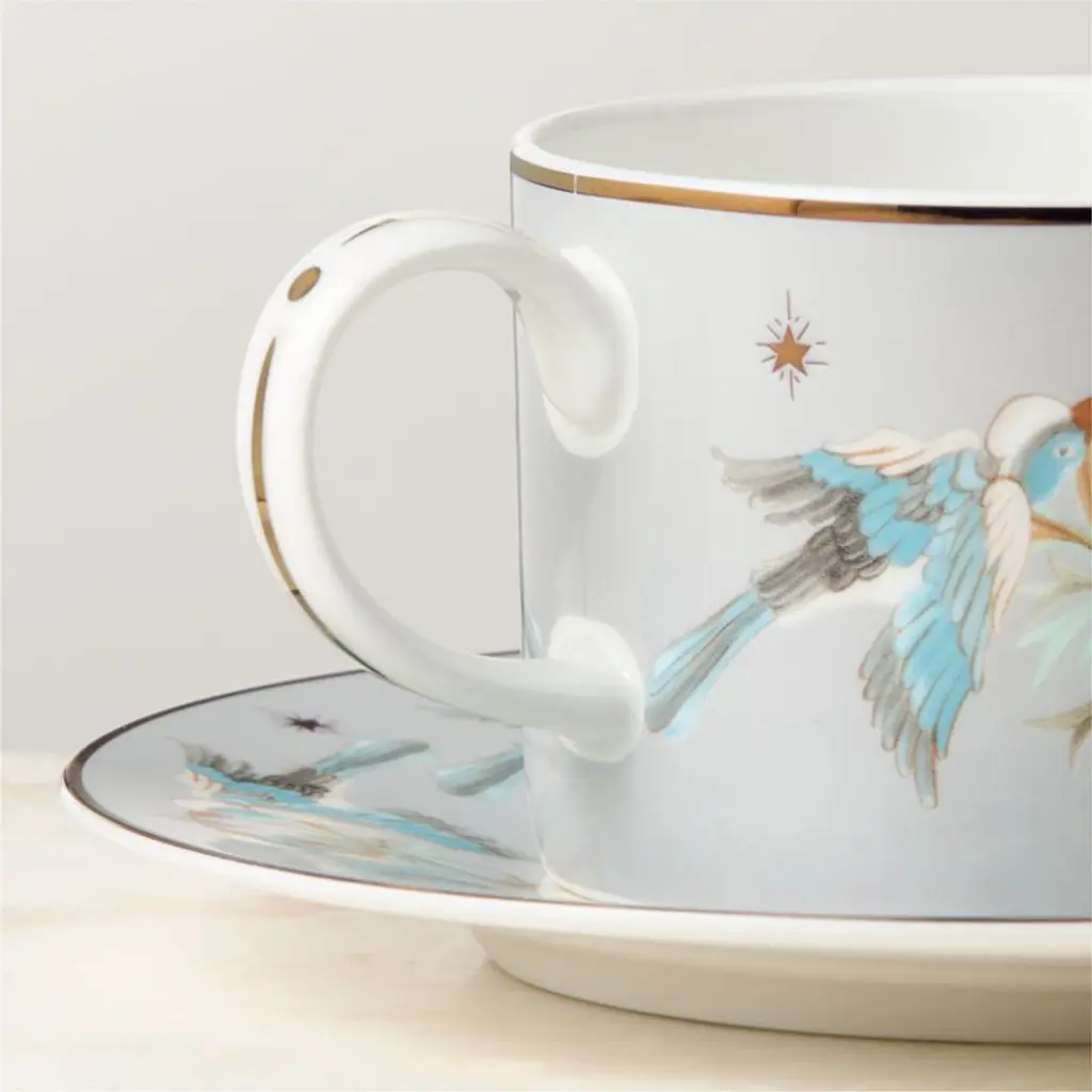 Featuring Art Nouveau-inspired artwork by award-winning Australian designer Silvana Azzi Heras of House of Heras, bone china teacup with saucer suits modern tables and elegant occasions. The design is defined by clean linework updated in a modern color palette. CB2 exclusive.