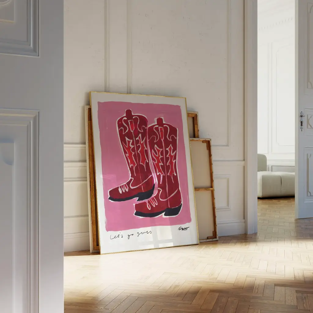 Cowboy Boots Hand Painted Art Print - A2Hand painted by Natalie and made into a beautiful print, this print is a perfect addition to any home decor. Smooth fine art 230 gsm matte card. Printed with vivid colour and detail. Sold without a frame.
