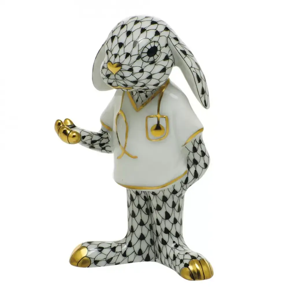 Endearing animals meek and bold, large and small, demure and majestic eagerly await the chance to melt your heart and warm your home. Each is brought to life by the skilled hands of artisans crafting and painting these charming porcelain creatures. The famous fishnet décor adorning many of the animals took form in 1858 when a Herend painter became inspired by a fishscale design he saw on a Chinese porcelain plate and painted a similar pattern onto a rooster figurine to imitate feathers. The rest is history, with the fishnet design now a Herend signature prized worldwide. Now the biggest porcelain manufactory in Europe, Herend was founded in 1826 to produce earthenware in the small Hungarian village for which it was named. At the time, Hungary was flooded with low-cost pottery, but in 1839, Mor Fischer became the Manufactory’s new owner and he decided to focus on producing dinnerware replacement pieces for Europe’s royal families to complement their valuable porcelain patterns from Germany and the Far East. As his client base grew, Fischer commissioned his artists to begin designing dinnerware patterns of their own. Queen Victoria’s 1851 purchase of a large set for Windsor Castle was a milestone, setting the stage for aristocrats throughout Europe to clamor for Herend in their estates. In the 1850s, Herend added meticulously-crafted figurines to its creations. Herend’s trademark fishnet pattern, which is widely recognized and prized as Herend’s signature design, started in 1858 when an artist who was intrigued with a Chinese plate’s fish scale design painted it onto a rooster figurine to imitate feathers.