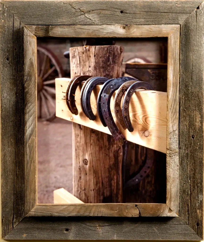 Cowboy Picture Frames Cowboy Picture Frames are some of our favorites to create. Our western decor enthusiasts have an appreciation for barnwood that city folk just can't always understand. To them, barnwood just looks old, but a more practiced eye can detect subtle color variations and rich textures. Of course, you can appreciate nature in a way that those who only view fields of sagebrush from inside their air-conditioned cars can't. They don't see the wildflowers, the scorpions and the circling hawks either. Maybe you can't dismantle the weathered barn and bring it indoors, but you can give prominence to some of that beautiful rustic wood with one of our Western Rustic frames. Our cowboy picture frames case a inch plank edge inside a 1- inch rustic wood frame. The frame width is approximately 2.25 inches (frame widths sometimes vary depending on the width of the original barnwood plank). This frame-inside-frame look lends itself especially well to western rustic subject matter. Your frame includes glass, foam board backing and hardware for hanging. Here's the perfect cowboy picture frame for that photo of your daughter on her first pony ride, a sunset on the ranch, or a painting of flowering cactus. The unique casing also makes these rustic western frames a great choice if you want to create a shadowbox for your grandfather's bolo tie clasp, a lucky horseshoe, or a few dried wildflowers. This style looks great when paired with one of our collage frames. This is authentic western rustic decor at its best. Product Specifications: Frame is crafted from authentic barnwood Frame width: 2.25 inches 5x7 photo opening Glass is included Sawtooth hanger Please note: Due to the nature of barnwood, your cowboy picture frame may vary slightly in color and texture from the one pictured here. Photos are NOT included.Natural imperfections may occur in this product.