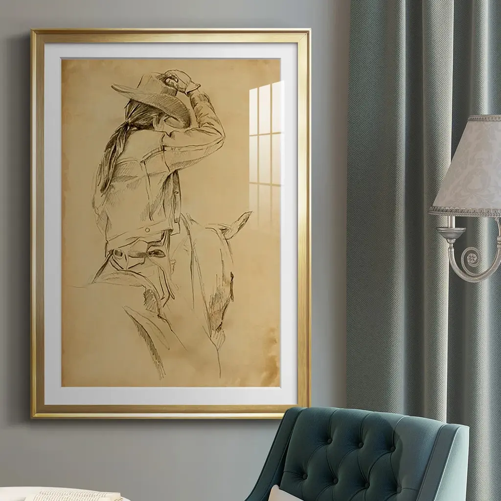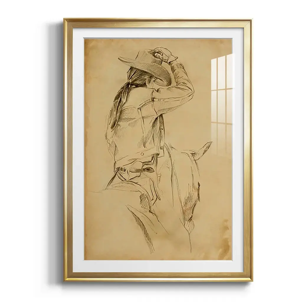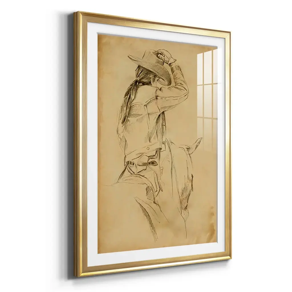 Cowgirl On Horseback Ii Premium Framed Print - Ready To Hang - 22.5x30.5 - Gold