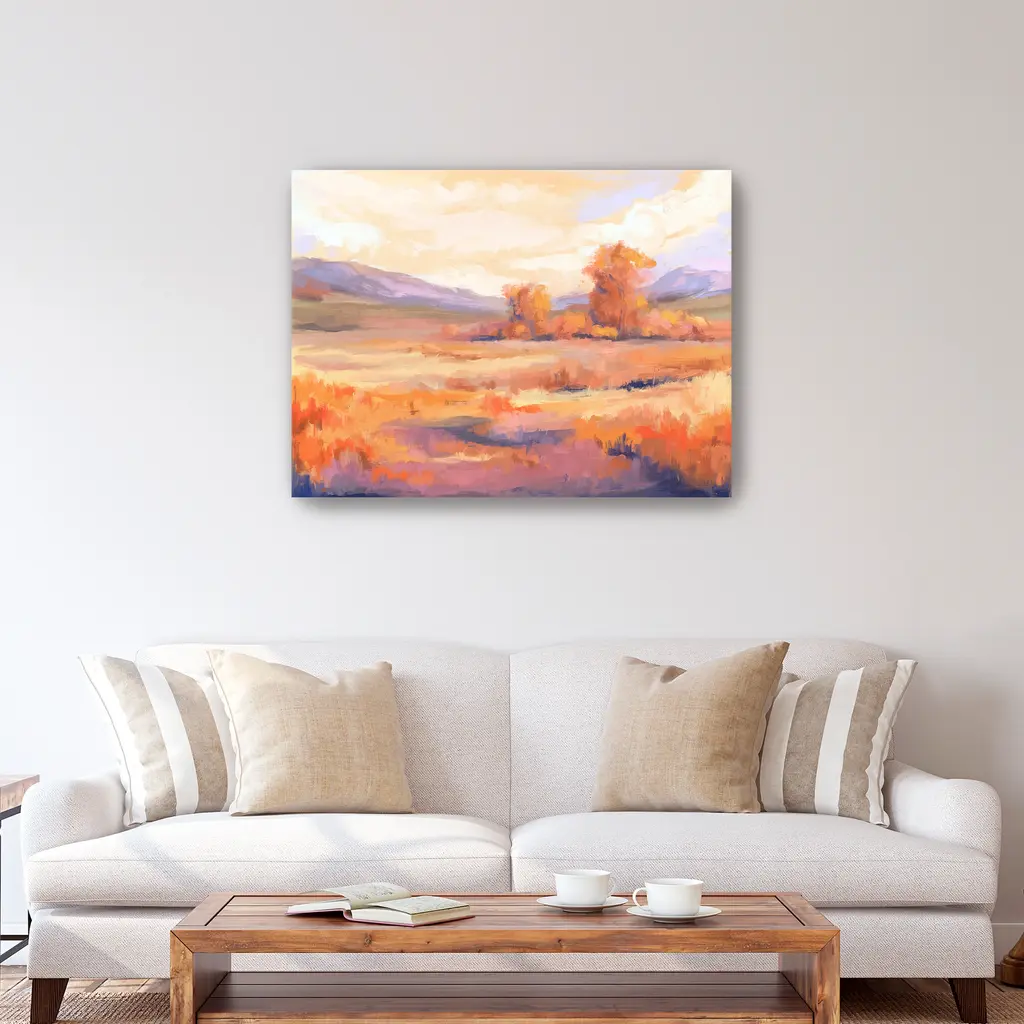 Bring the beauty of autumn indoors with this landscape fall canvas art print that captures the season’s serene charm. The rich hues and tranquil scenery evoke cozy walks through nature, making it a captivating focal point for seasonal décor. Perfect for lovers of fall landscapes and rustic wall art inspiration. Our Gallery Wrap Canvas Prints are proudly assembled with high quality materials in California, USA. Each piece is printed on a thick, archival grade canvas using Giclee technology. It is then hand-stretched by our experienced artisans over solid wood bars, which will not warp over time. The final product is a piece personally crafted for you to confidently display on your wall. Care and Assembly: Ensure that the location of your piece has little to no exposure to heat, sunlight, and moisture. Wipe clean, only if needed. Each piece includes a sawtooth hanger to hang on your wall horizontally.