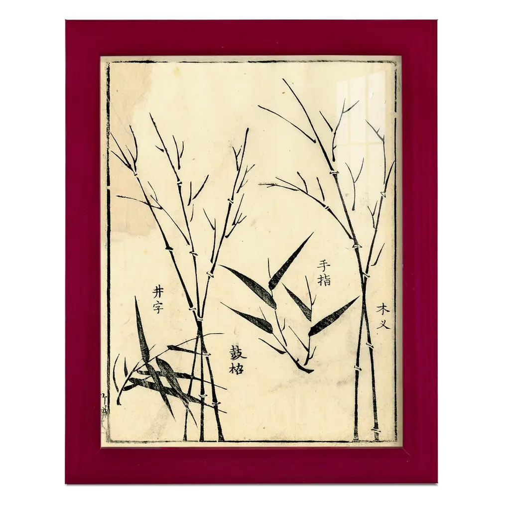 Crackled Bamboo Woodblock II -EZ SWITCH Framed Print w/glass-Cherry Red A delightful, framed print. Featuring a solid wood frame with real wood glass. This premium print is giclee quality. In addition, every frame features a removable back and table top stand. This allows you to change your art in the future or to just stand the art on a table for a new look. We are sure you'll enjoy our new series of EZ SWITCH Framed Art. Solid Wood Frame Real Glass Removable / Replaceable Art Built in Tabletop Stand Sizes range from 4x6 up to 12x15 - buy just one or pair them up as sets as you see fit.