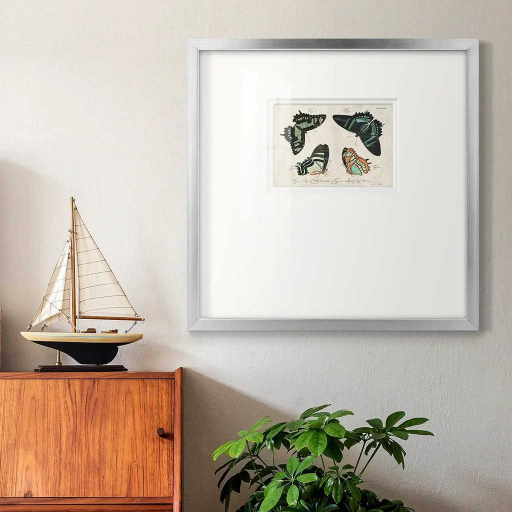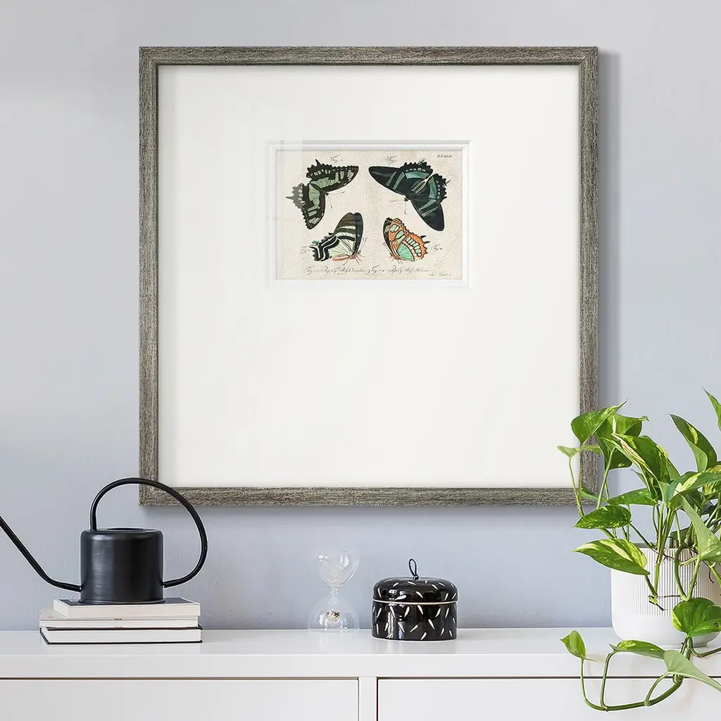 Crackled Butterflies IIIPremium Framed Print A framed cold pressed paper print featuring superior double matting and quality frame. 2 SIZES AVAILABLE 16''X16''' - Overall Size 20''X20''' - Overall Size Each piece is made to order. Each piece comes with hanging hardware. Made in the USA Ready to Hang Giclee Paper Print Plexiglass Beveled Matt Board Double Matte Board