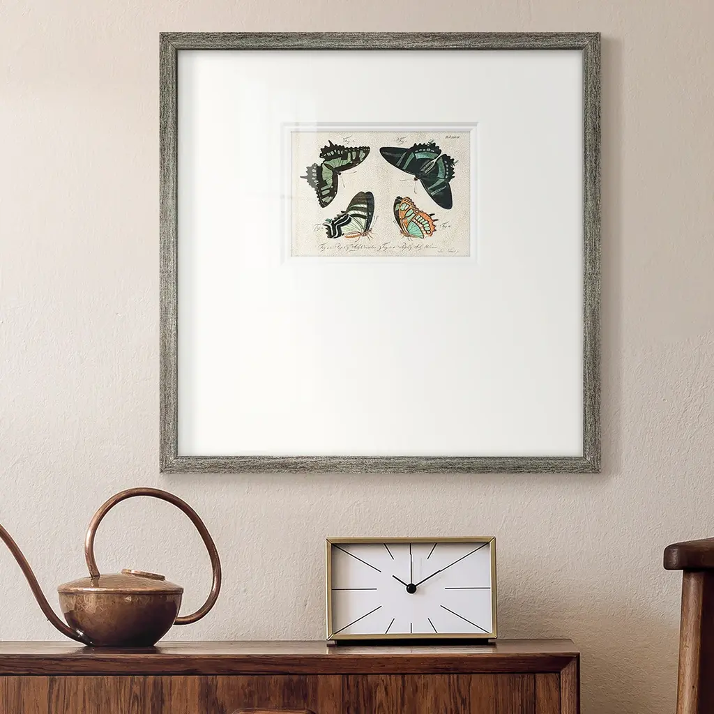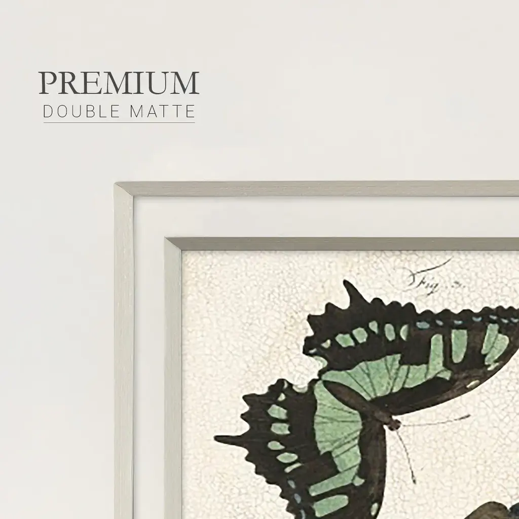 Crackled Butterflies IIIPremium Framed Print A framed cold pressed paper print featuring superior double matting and quality frame. 2 SIZES AVAILABLE 16''X16''' - Overall Size 20''X20''' - Overall Size Each piece is made to order. Each piece comes with hanging hardware. Made in the USA Ready to Hang Giclee Paper Print Plexiglass Beveled Matt Board Double Matte Board