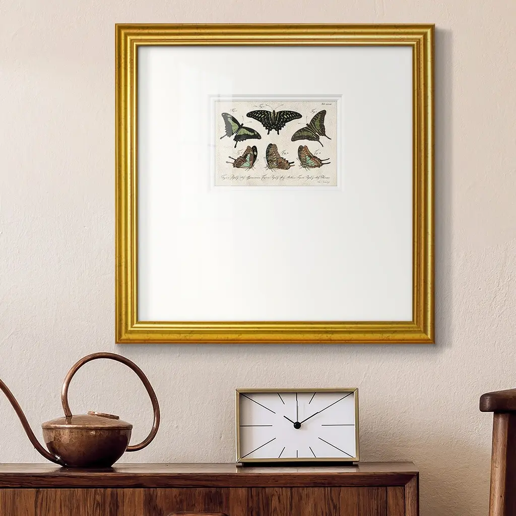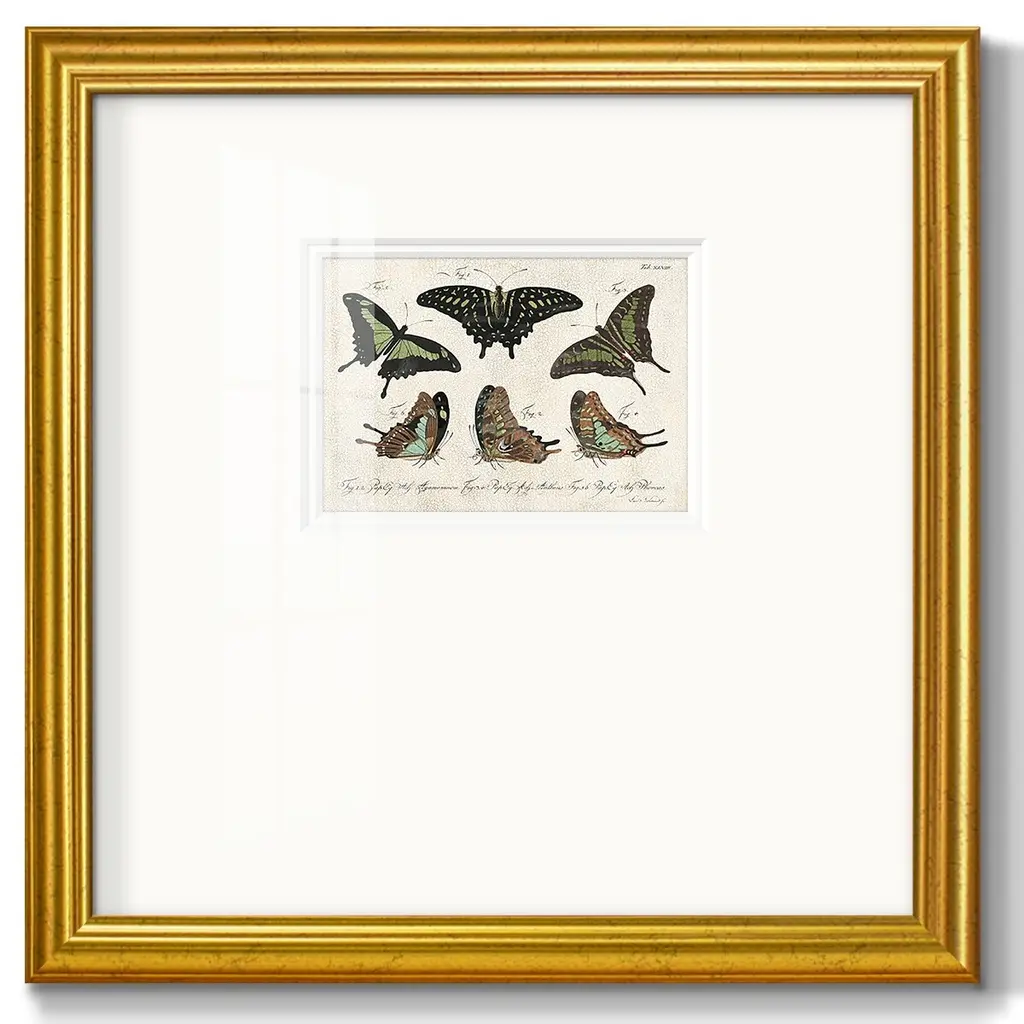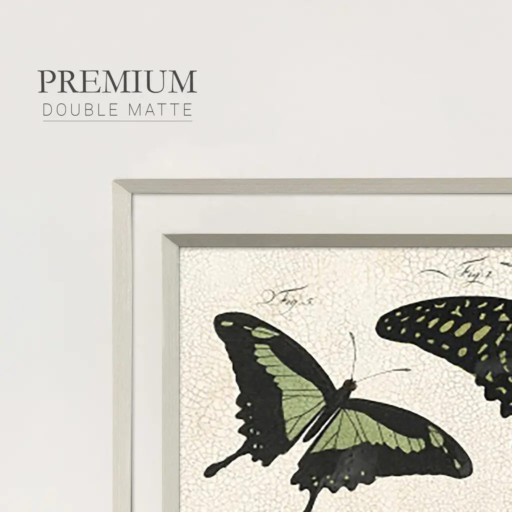 Crackled Butterflies IIPremium Framed Print A framed cold pressed paper print featuring superior double matting and quality frame. 2 SIZES AVAILABLE 16''X16''' - Overall Size 20''X20''' - Overall Size Each piece is made to order. Each piece comes with hanging hardware. Made in the USA Ready to Hang Giclee Paper Print Plexiglass Beveled Matt Board Double Matte Board