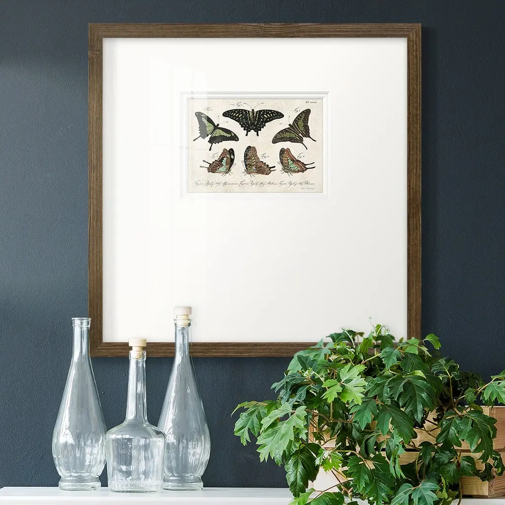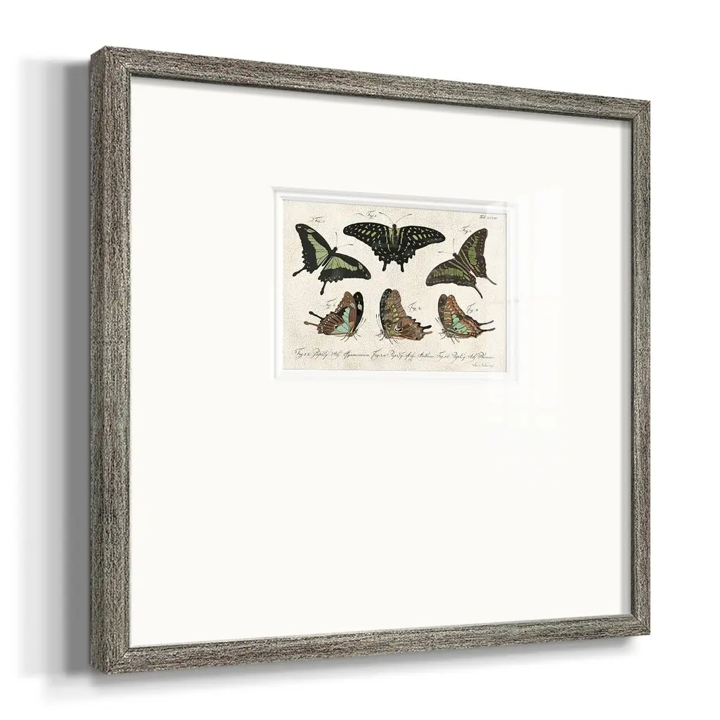 Crackled Butterflies IIPremium Framed Print A framed cold pressed paper print featuring superior double matting and quality frame. 2 SIZES AVAILABLE 16''X16''' - Overall Size 20''X20''' - Overall Size Each piece is made to order. Each piece comes with hanging hardware. Made in the USA Ready to Hang Giclee Paper Print Plexiglass Beveled Matt Board Double Matte Board