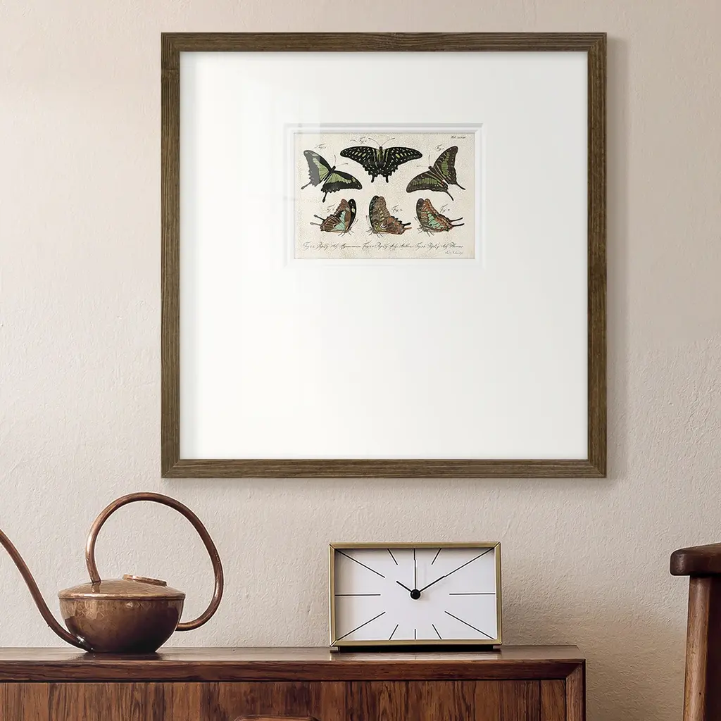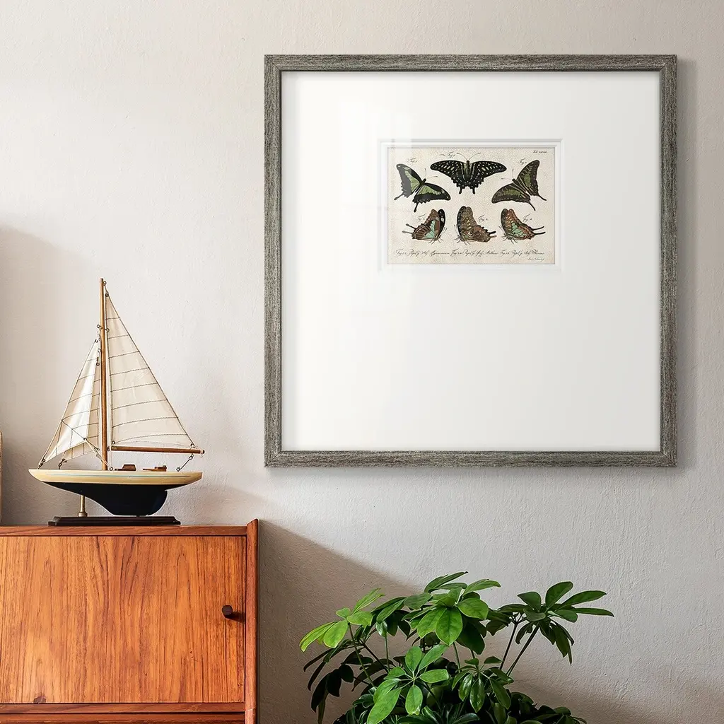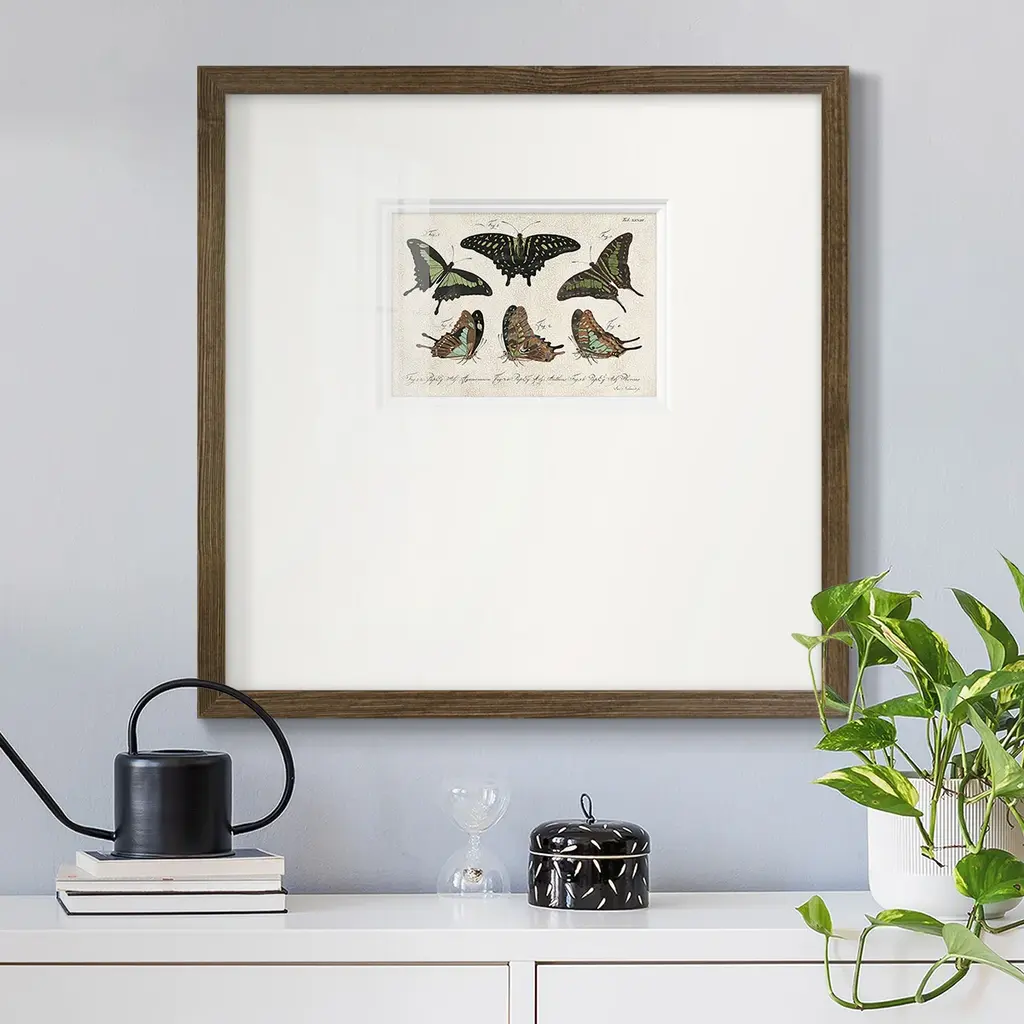 Crackled Butterflies IIPremium Framed Print A framed cold pressed paper print featuring superior double matting and quality frame. 2 SIZES AVAILABLE 16''X16''' - Overall Size 20''X20''' - Overall Size Each piece is made to order. Each piece comes with hanging hardware. Made in the USA Ready to Hang Giclee Paper Print Plexiglass Beveled Matt Board Double Matte Board