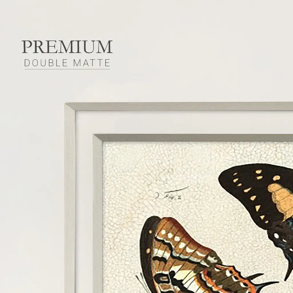 Crackled Butterflies IVPremium Framed Print A framed cold pressed paper print featuring superior double matting and quality frame. 2 SIZES AVAILABLE 16''X16''' - Overall Size 20''X20''' - Overall Size Each piece is made to order. Each piece comes with hanging hardware. Made in the USA Ready to Hang Giclee Paper Print Plexiglass Beveled Matt Board Double Matte Board