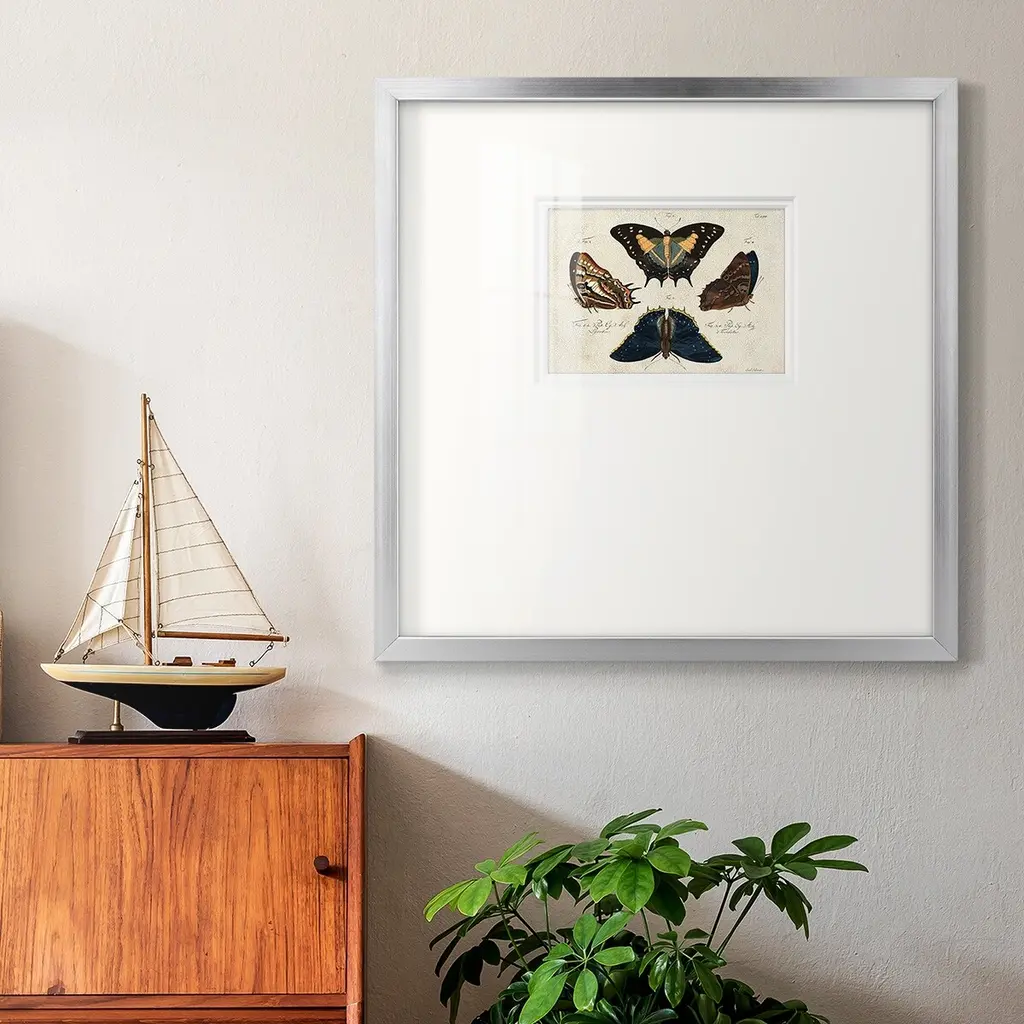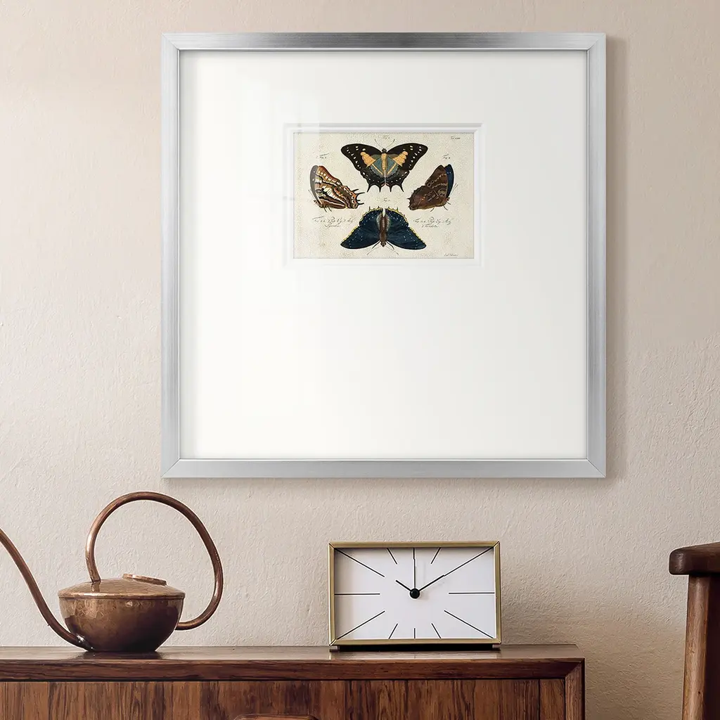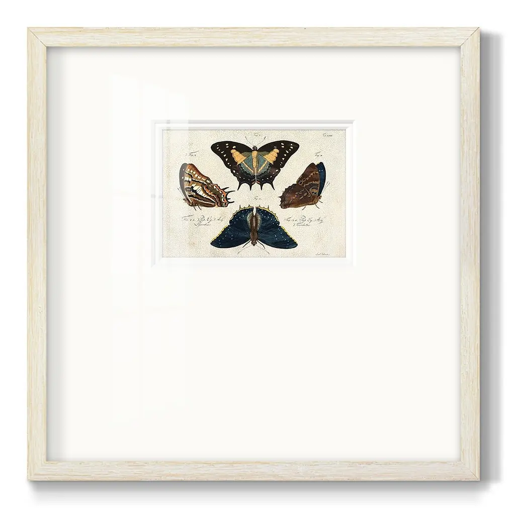Crackled Butterflies IVPremium Framed Print A framed cold pressed paper print featuring superior double matting and quality frame. 2 SIZES AVAILABLE 16''X16''' - Overall Size 20''X20''' - Overall Size Each piece is made to order. Each piece comes with hanging hardware. Made in the USA Ready to Hang Giclee Paper Print Plexiglass Beveled Matt Board Double Matte Board