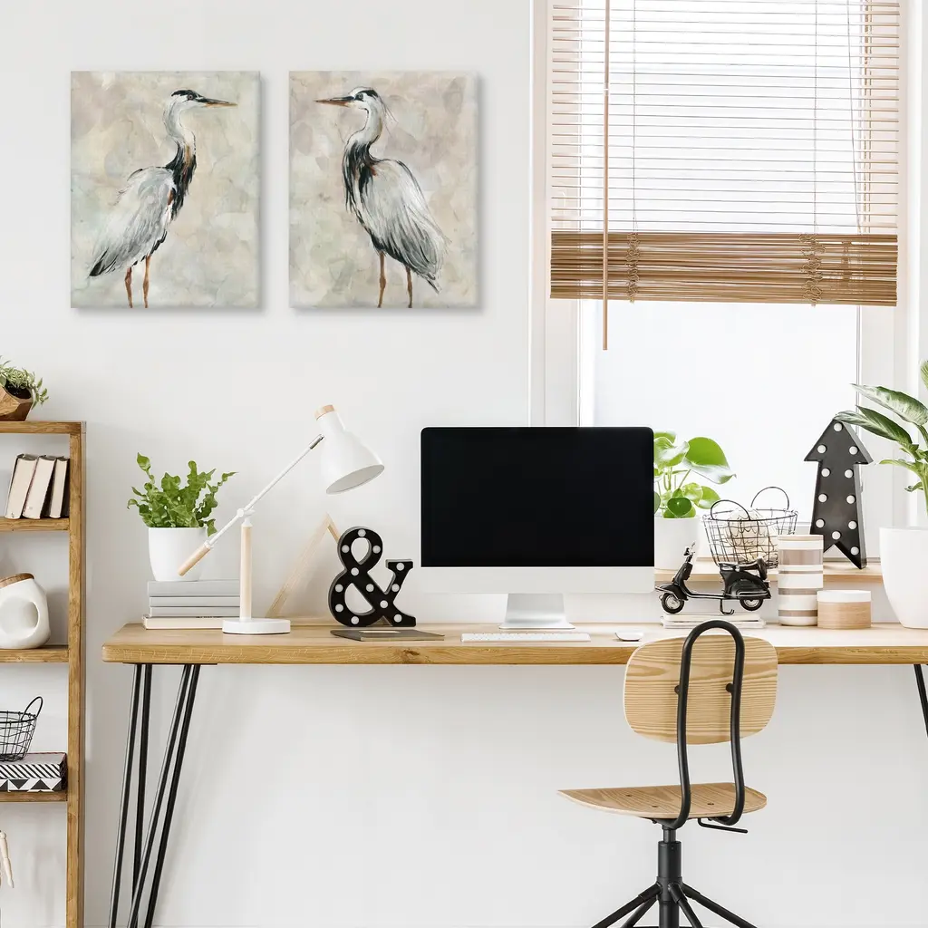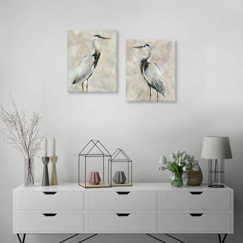 Crane At Dusk I & Ii By Carol Robinson Canvas Art Prints - 16x20x2