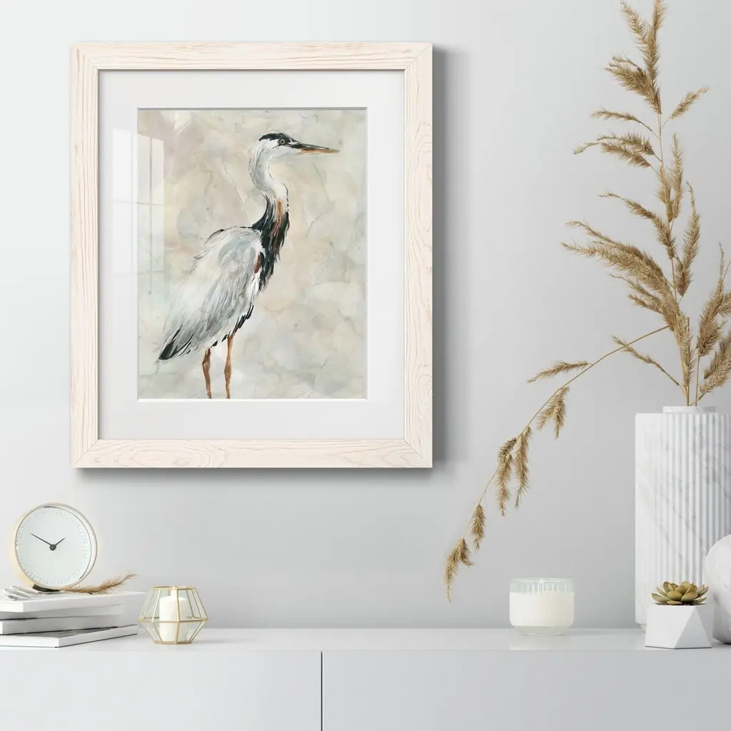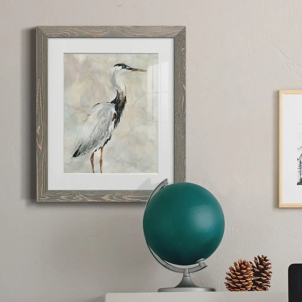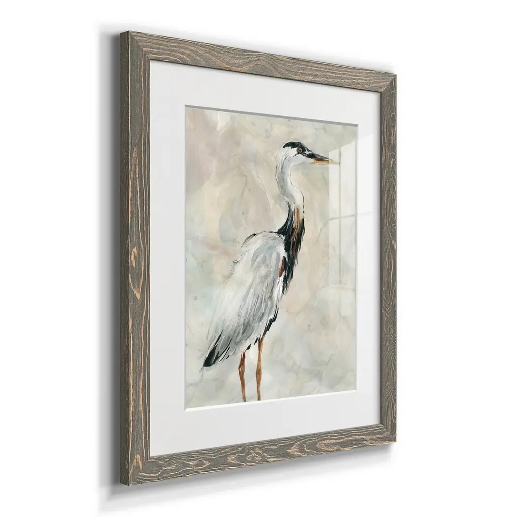 Crane at Dusk I-Premium Framed Print - Ready to Hang Framed in distressed wood and available in an array of sizes and colors Each piece is joined and assembled by hand and comes ready to hang 2 INCH BEVELED MATTE BOARD PLEXIGLASS COVERING READY TO HANG MADE IN THE USA SOLID WOOD FRAME MADE IN USA FADE RESISTANT GICLEE PRINTING on Canvas or Paper