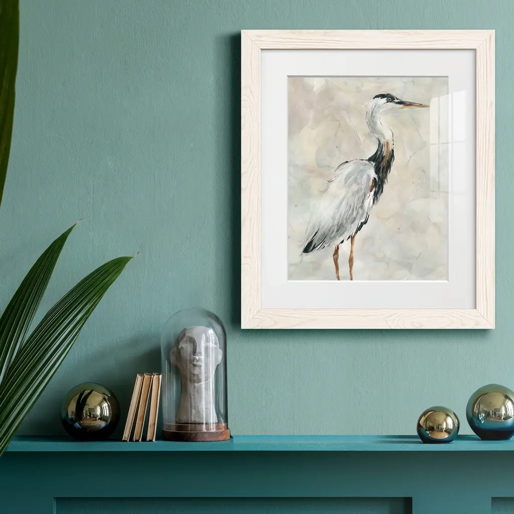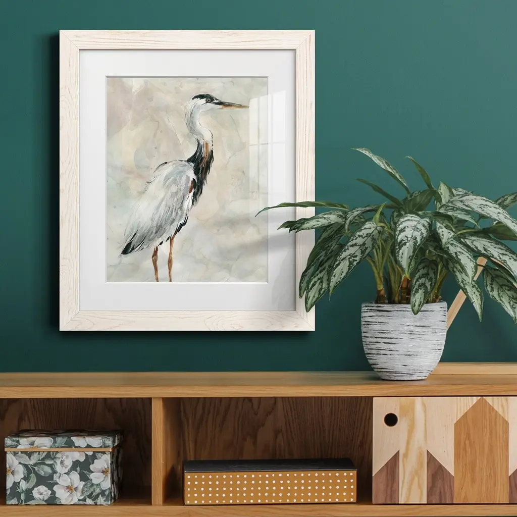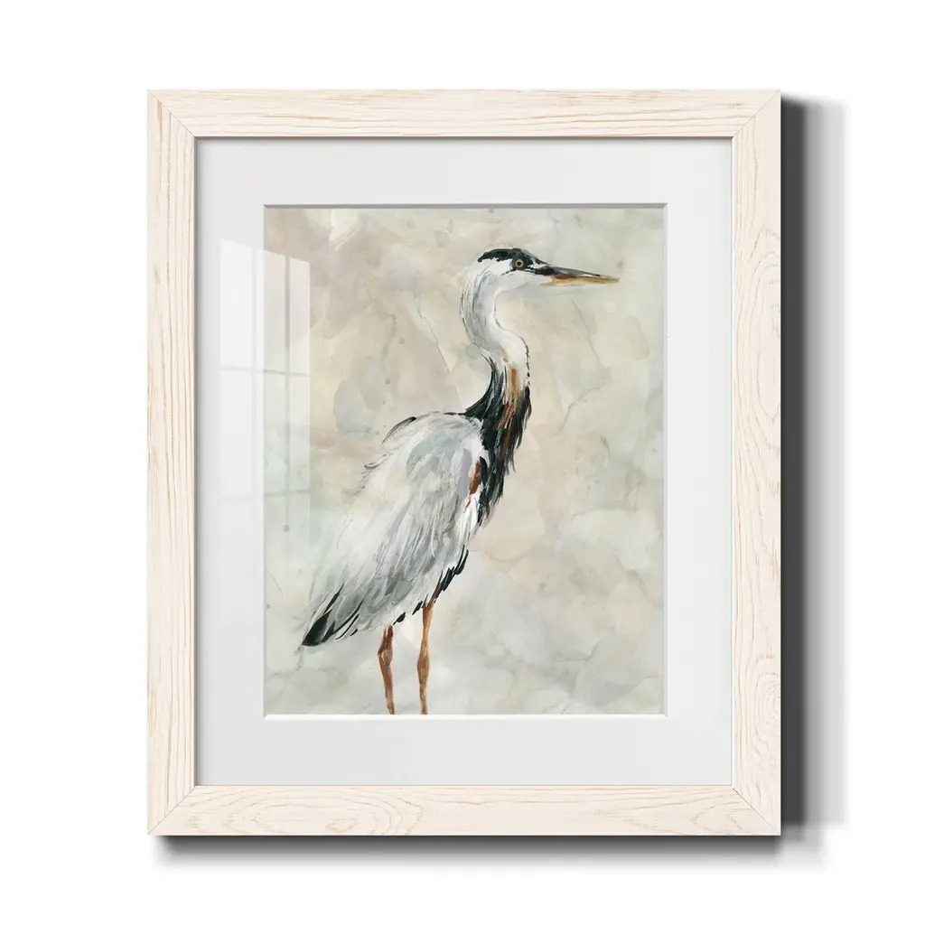Crane at Dusk I-Premium Framed Print - Ready to Hang Framed in distressed wood and available in an array of sizes and colors Each piece is joined and assembled by hand and comes ready to hang 2 INCH BEVELED MATTE BOARD PLEXIGLASS COVERING READY TO HANG MADE IN THE USA SOLID WOOD FRAME MADE IN USA FADE RESISTANT GICLEE PRINTING on Canvas or Paper